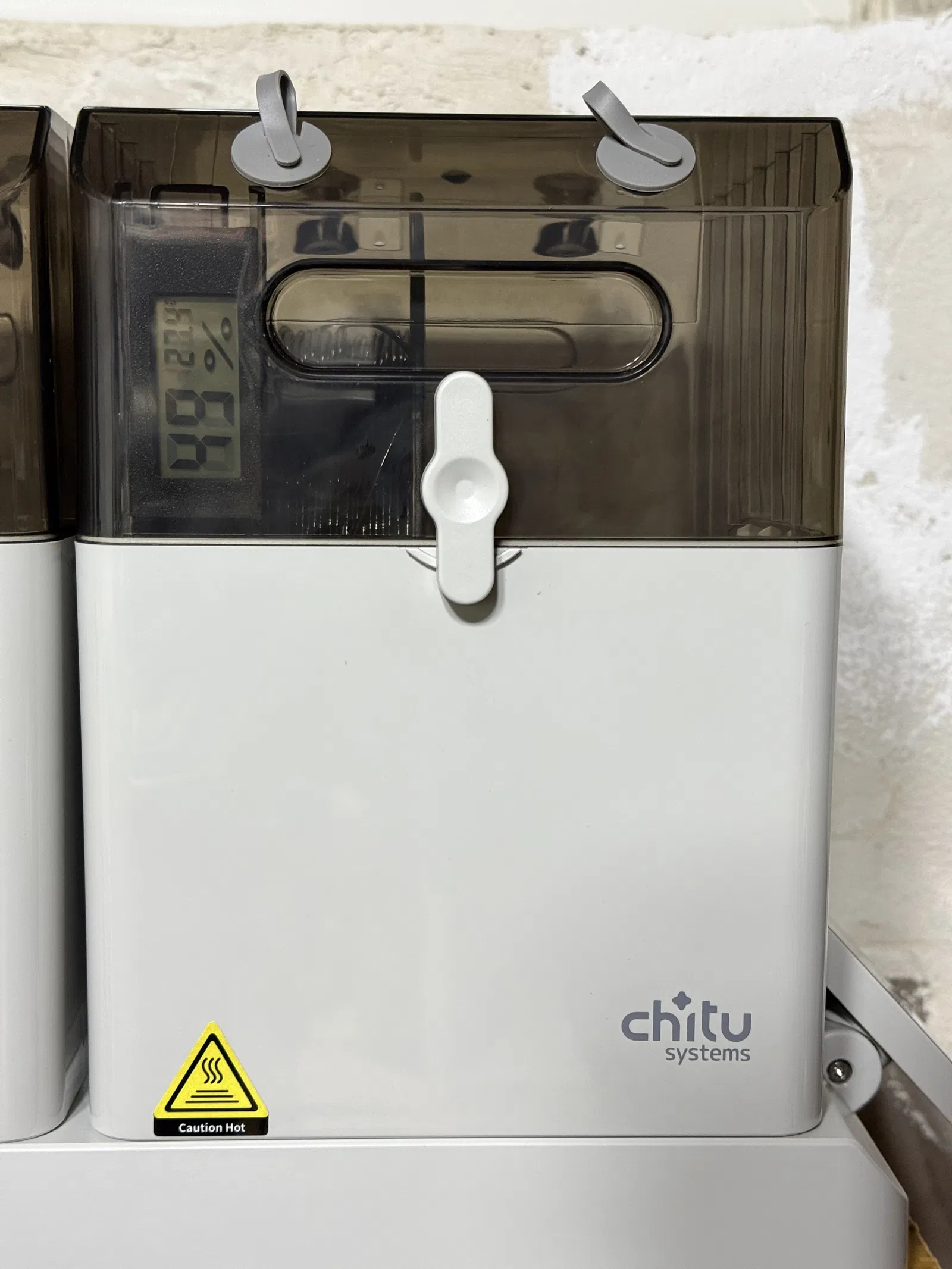 Một cái vỏ để gắn ẩm kế/nhiệt kế điện tử, dùng thay cho miếng "Passive Humidity Indicator Paper" trong máy sấy filament Chitu Systems.