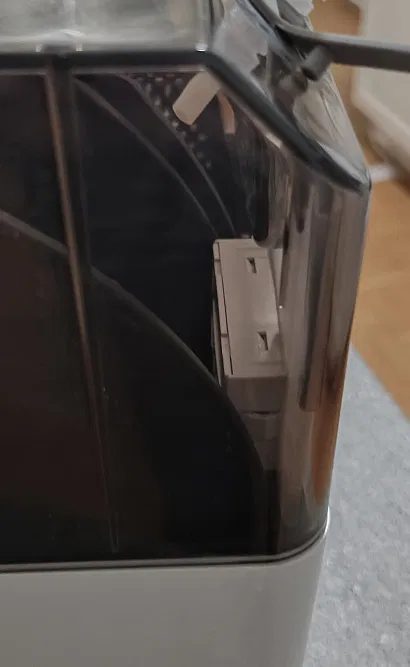 Mình không thích bản gốc vì nó để nghiêng ngang, với lại muốn gắn thì phải tháo rời cái hygrometer ra để lấy ruột nhét vào holder. Mình còn gặp một sự cố ngay trong lúc in vì nó bị cấn vào mép một cuộn spool phía trước; chuyện đó có vẻ làm cuộn spool bị lệch trên con lăn trong lúc in qua đêm rồi kẹt lại, sau đó máy in kéo cả cái hộp sấy bật khỏi đế Chitu E1 trước khi nhận ra filament bị rối và tự pause bản in.