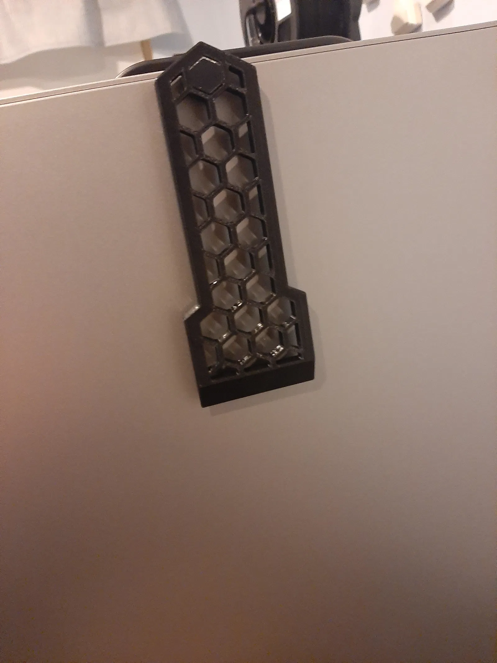 Giá đỡ Hexscraper holder gắn bên hông máy in 3D thông qua tay cầm phía trên. Thiết kế lục giác giữ print bed scraper chắc chắn, tương thích với enclosure. Khuyến nghị in đúng 100% scale như Hexscraper gốc.