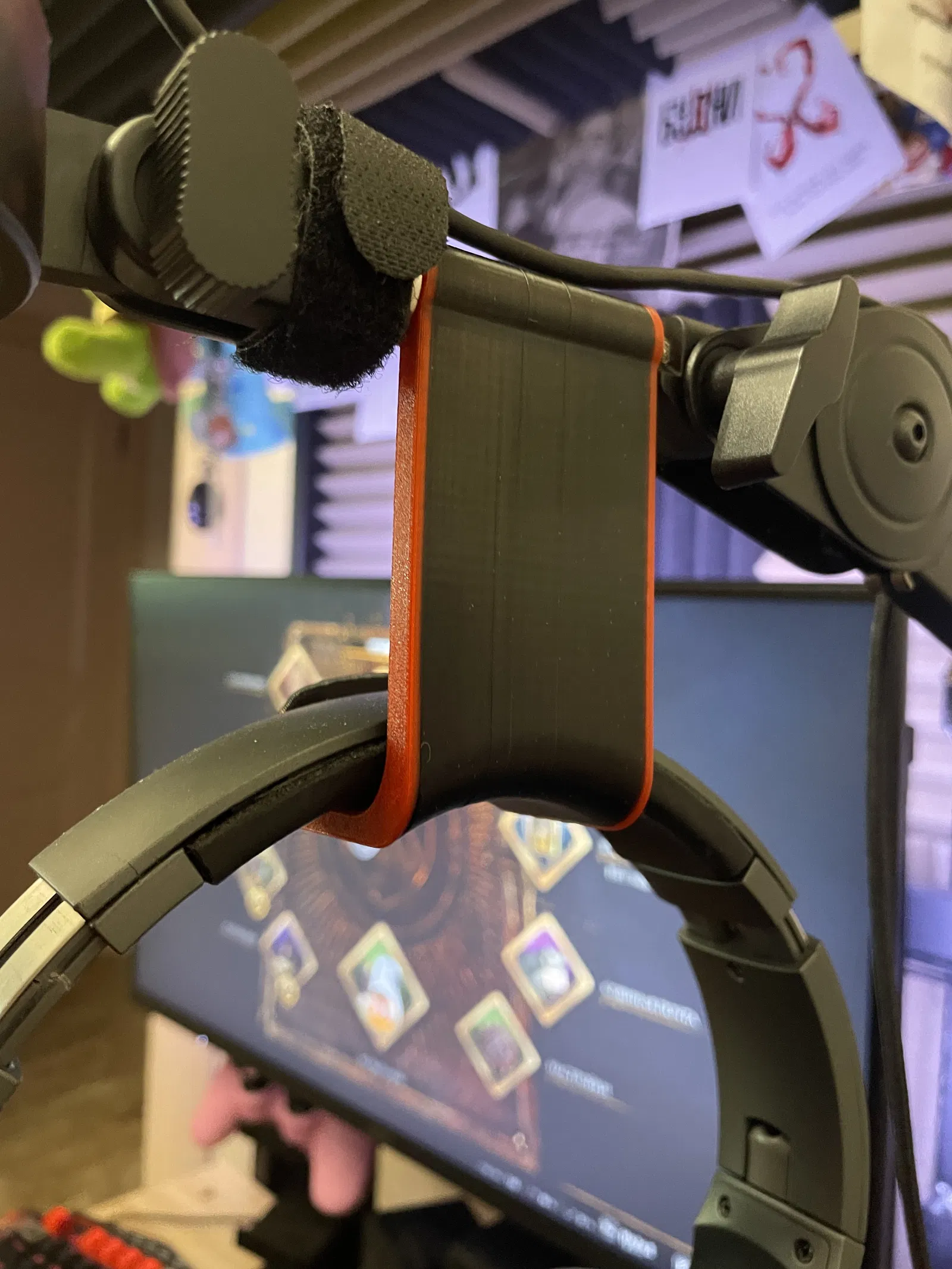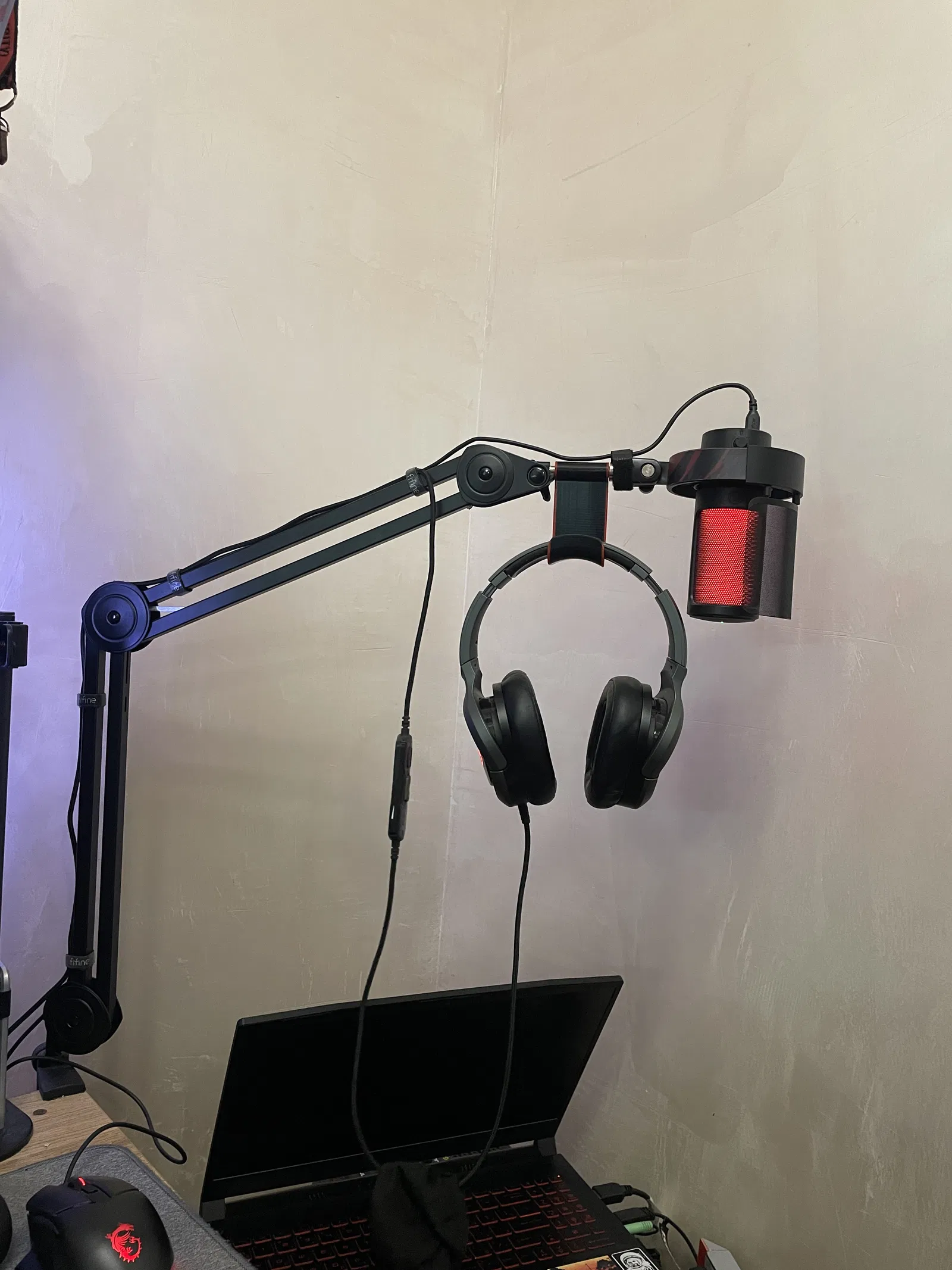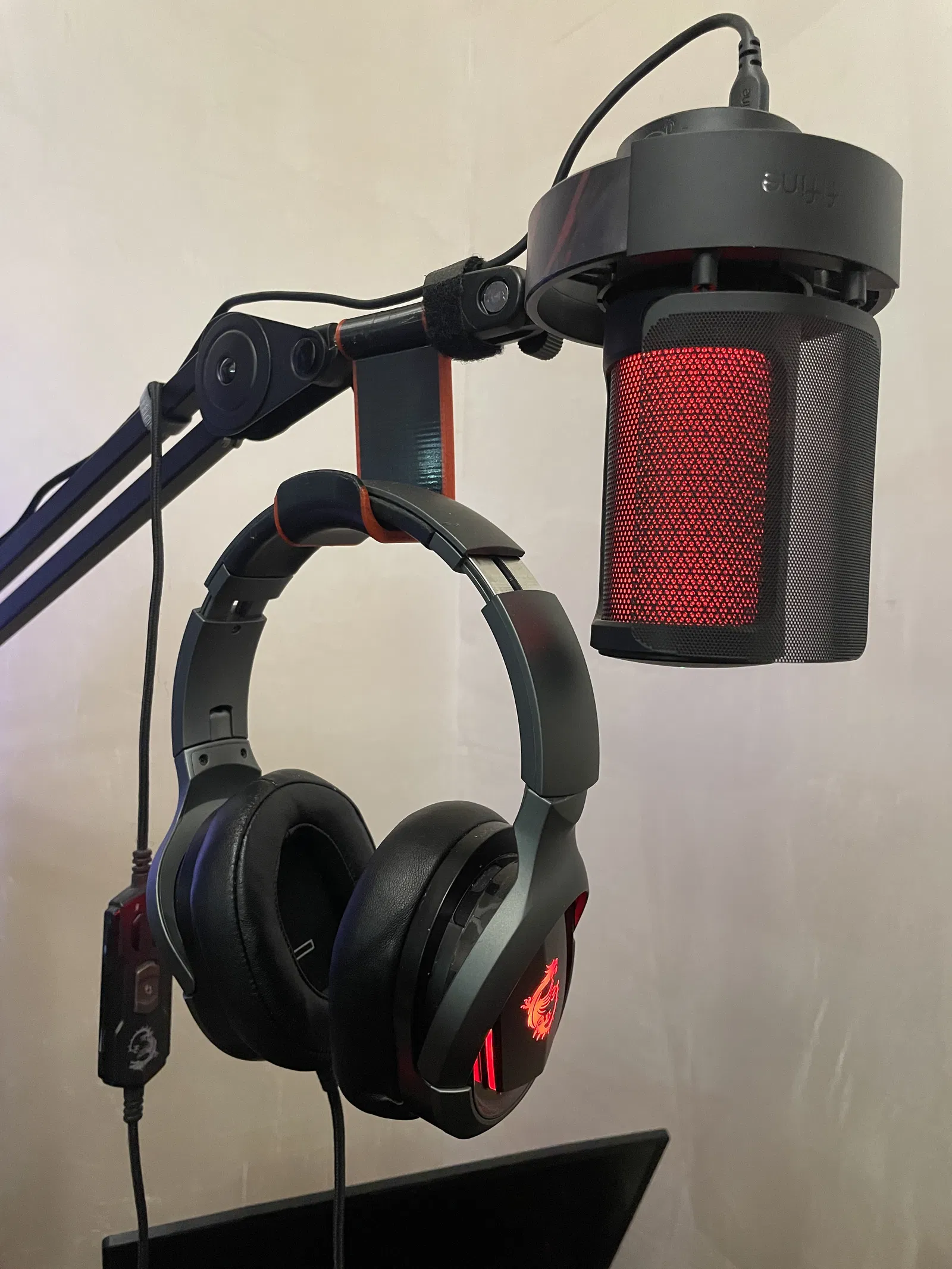 Mẫu giá treo giúp bạn treo tai nghe gọn gàng trực tiếp lên pantograph, tiện sử dụng và tiết kiệm không gian. Phù hợp cho góc làm việc có micro/pantograph, giữ tai nghe luôn trong tầm tay.
