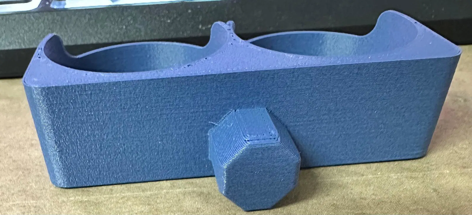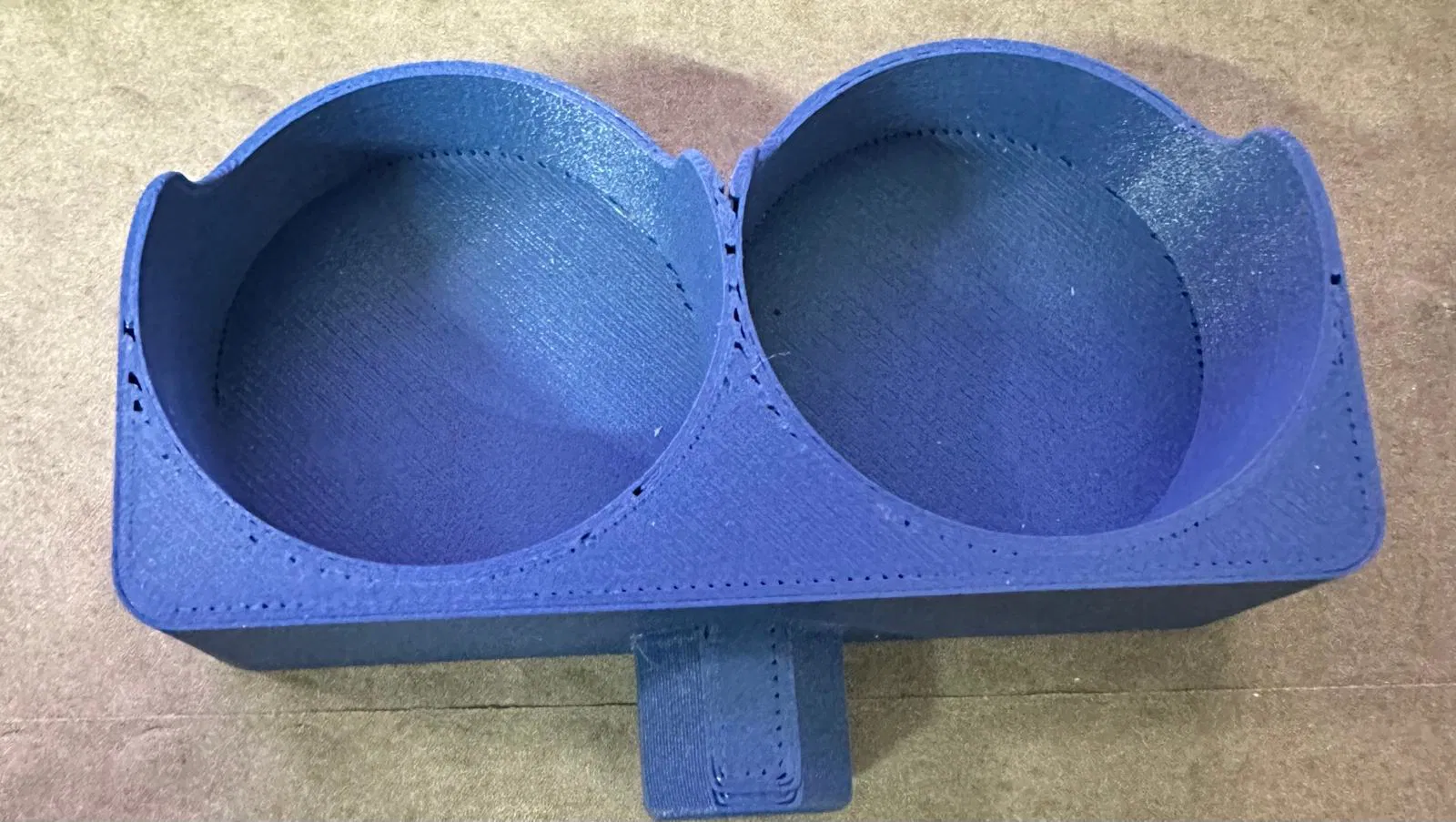 Mẫu khay/holder kiểu push-fit gắn Multiboard để giữ chai sơn Vallejo 60ml gọn gàng. Thiết lập in tham khảo: 3 walls, 10% grid infill; filament trong ảnh là PLA-CF của Flashforge.