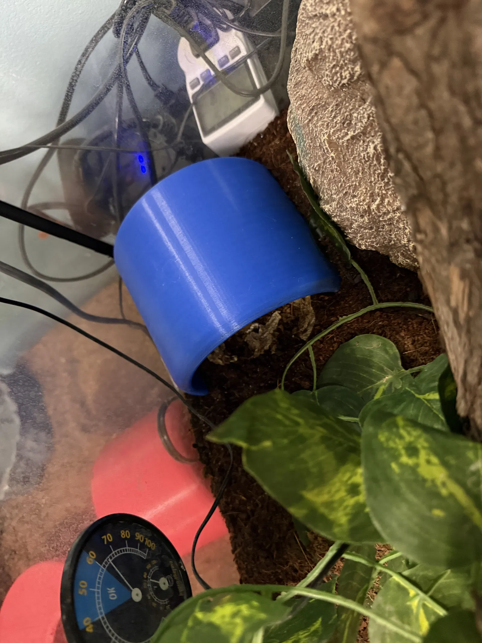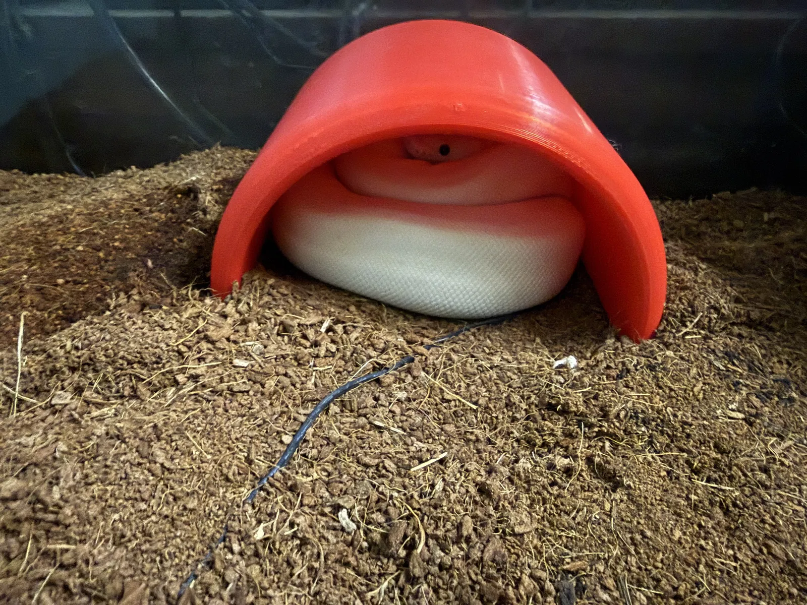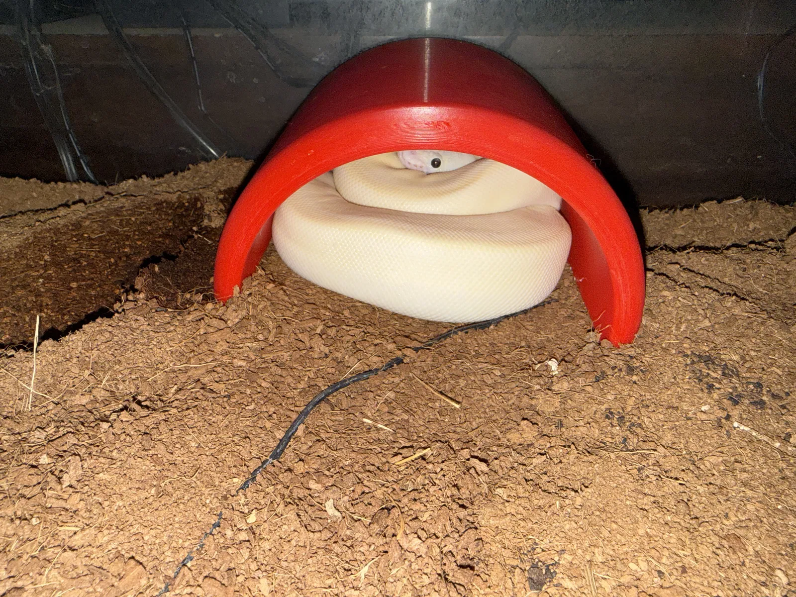 Mẫu hang trú ẩn cho rắn/bò sát kiểu khúc gỗ nửa, thiết kế cho ball python juvenile đến sub-adult. Rắn khoảng 300g vẫn chui vừa và dùng hằng ngày, phù hợp làm reptile hide nhỏ gọn.
