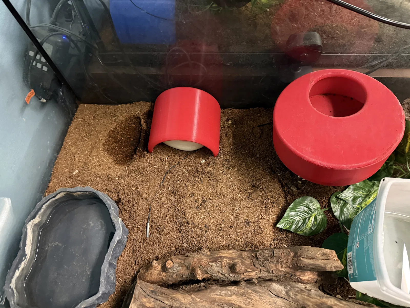 Mình làm cái hang trú ẩn cho bò sát kiểu khúc gỗ nửa này cho mấy bé ball python còn nhỏ và giai đoạn sub-adult. Con ball python lớn hơn của mình rất mê, ngày nào cũng chui vô nằm. Bé khoảng 300 gram và vẫn vừa vặn, nằm thoải mái trong đó.