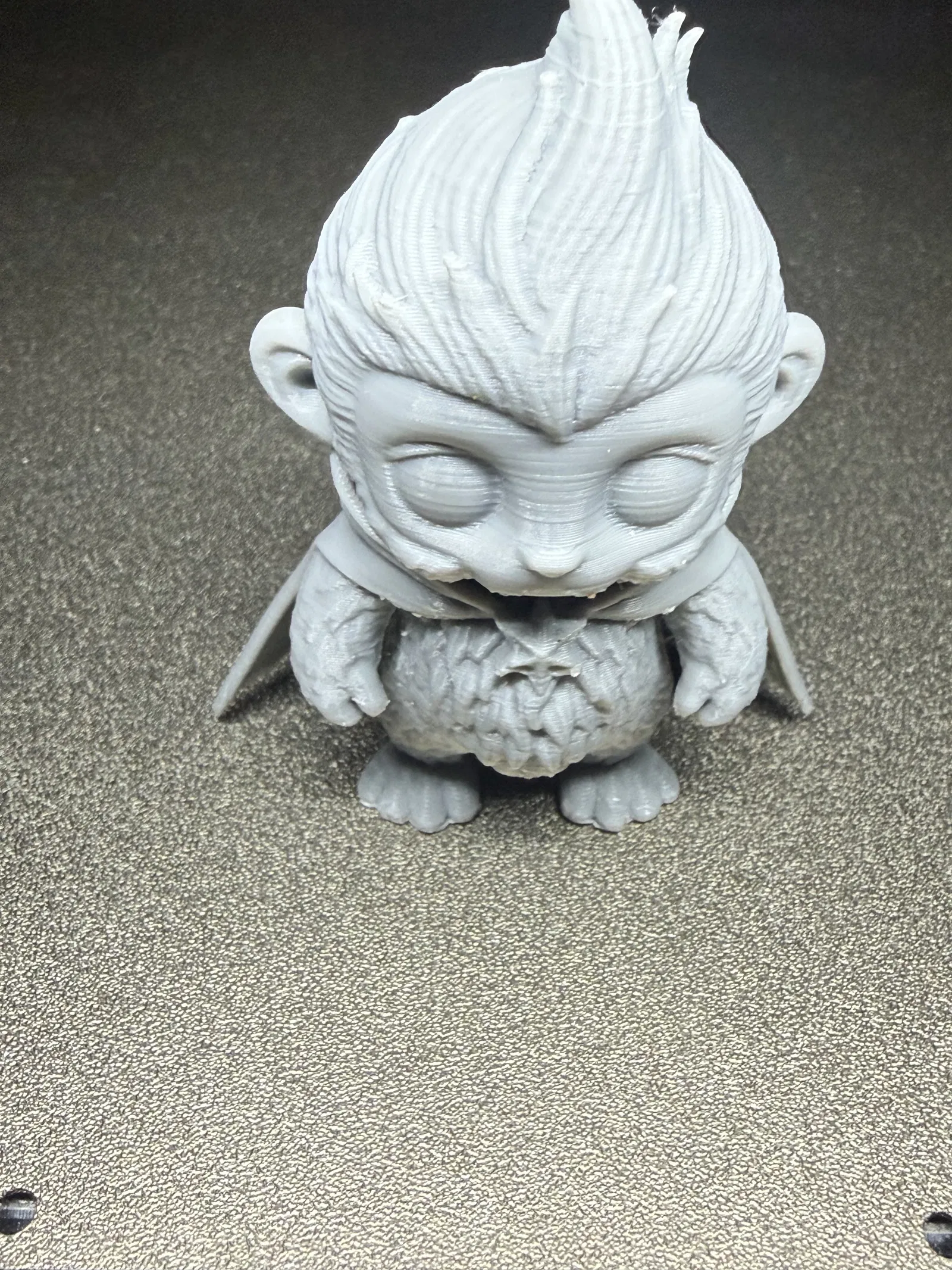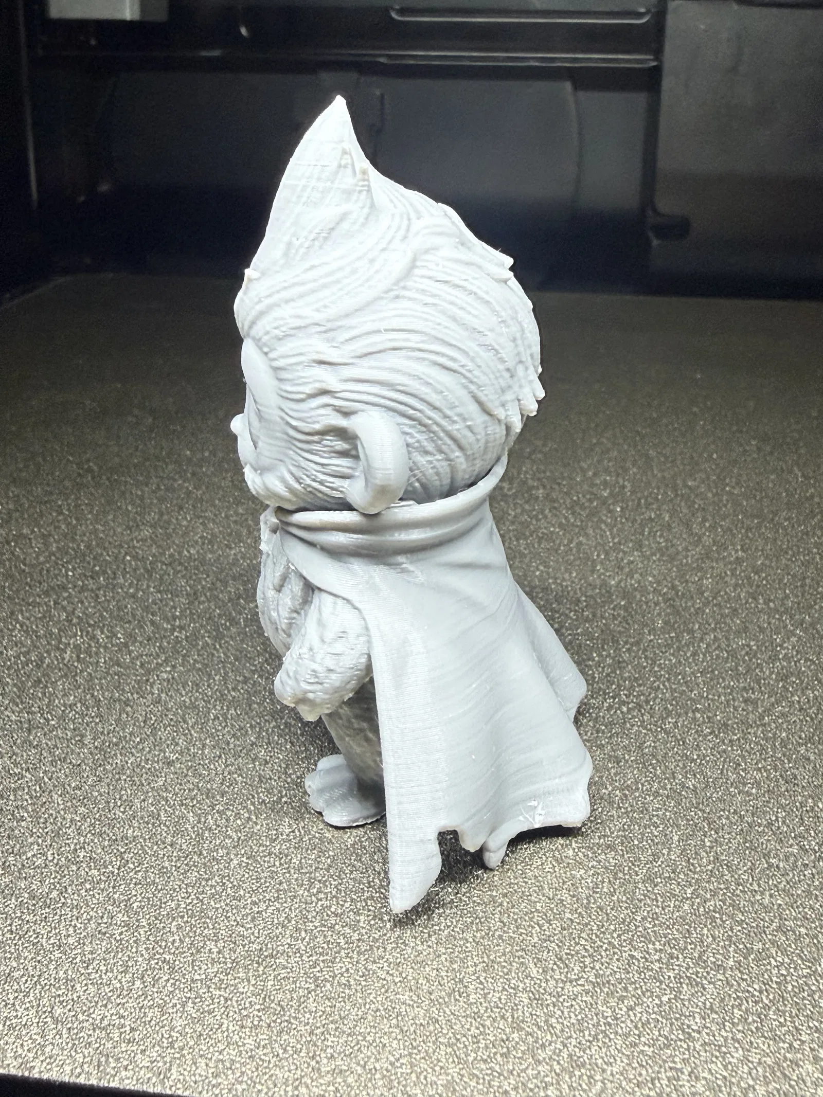 Mẫu Wizard Monkey Chibi Style: chú khỉ pháp sư fantasy kiểu chibi với áo choàng bay và biểu tượng arcane. In FDM liền khối, lên chi tiết tốt, không cần supports, rất hợp để trưng bày hoặc sơn.