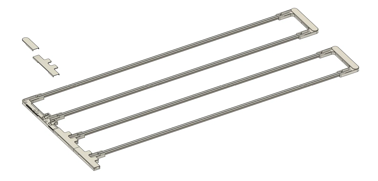 Các lỗ bắt vít giúp canh thẳng hàng dễ dàng và phù hợp với đa số kích thước vít countersunk (miễn là hợp lý). Phần nắp (cover) bấm vào để che dây. Cấu hình hiện tại bố trí LED strips với khoảng cách 5.5 inch (140mm) giữa các tâm. Thiết kế để in đẹp, không cần support.