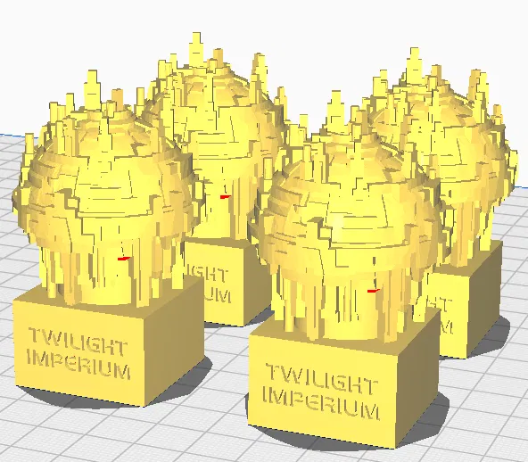 Mẫu này đơn giản là dùng một trụ cylinder lớn hơn để nối phần warsun với phần đế. Mình thấy mẫu gốc có khá nhiều supports khó với tới ở phần giữa bên dưới warsun, nên bản này về cơ bản loại bỏ được mấy supports đó.
