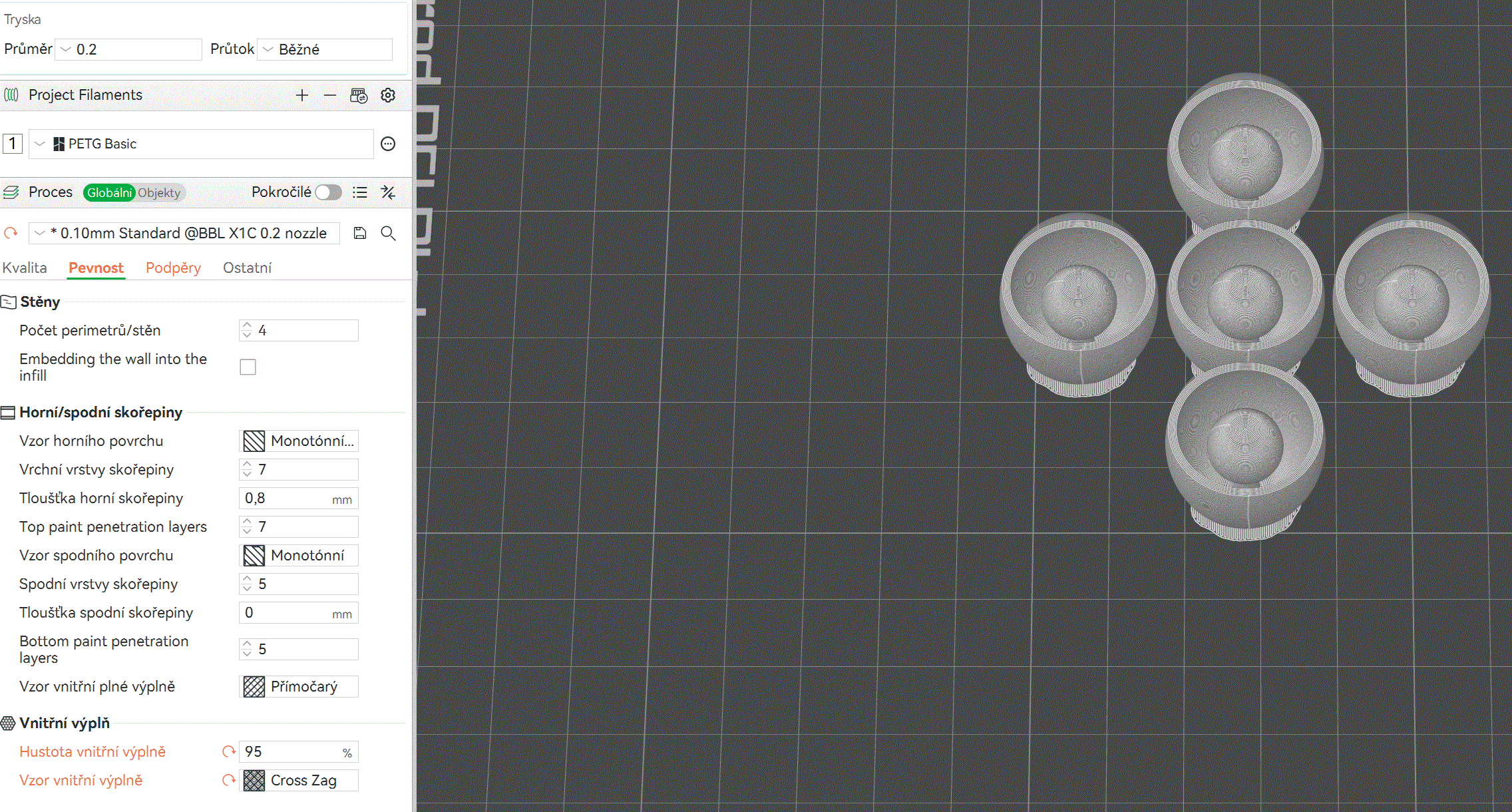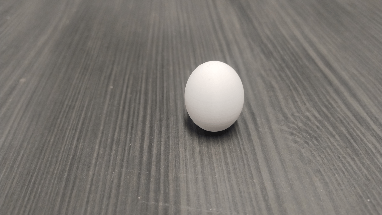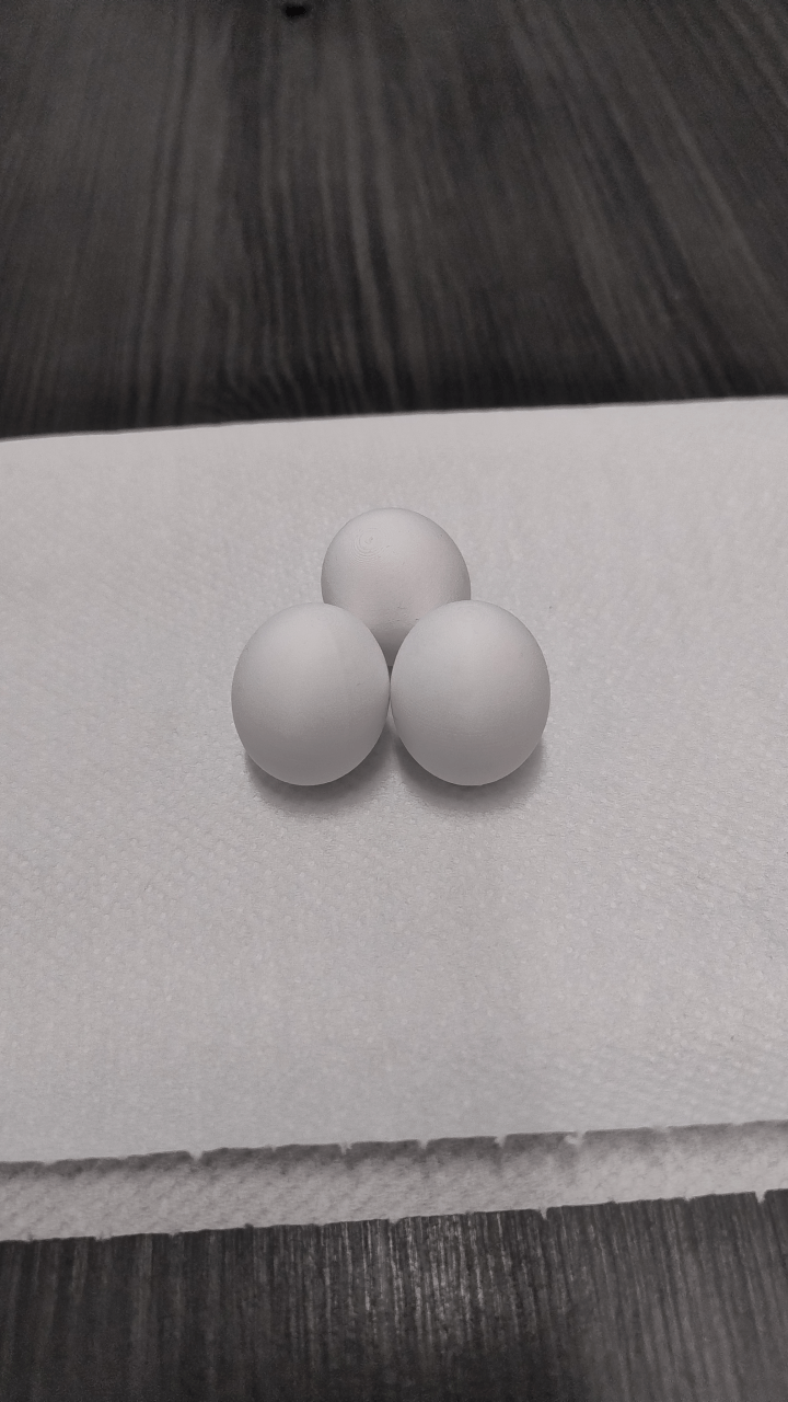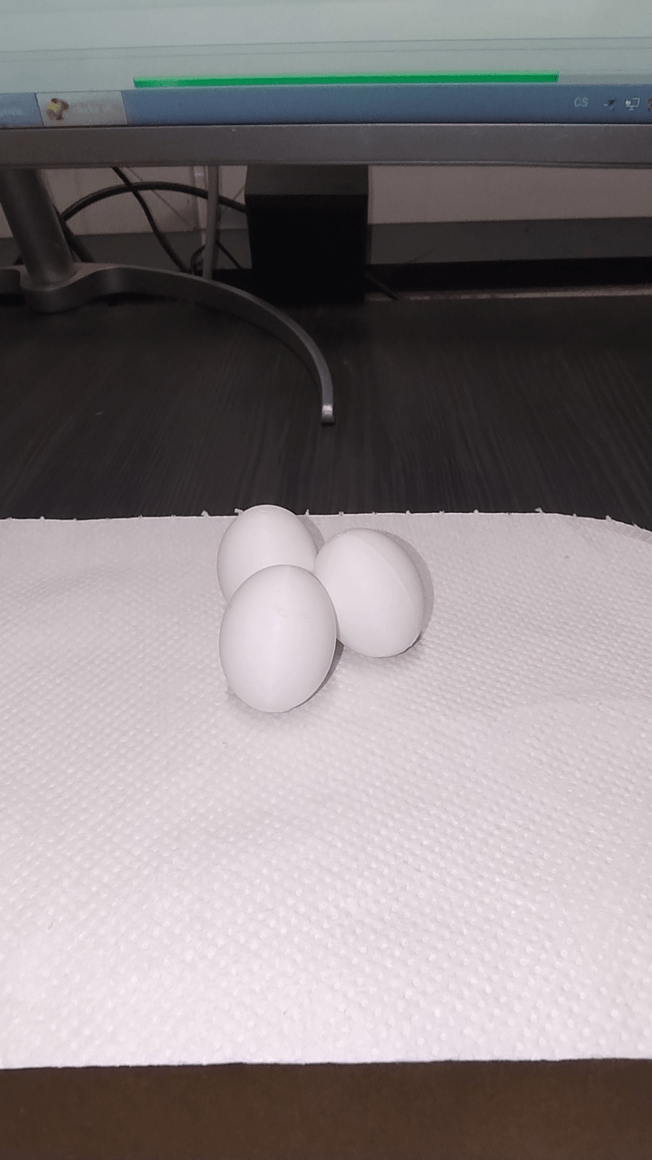 Khi in, bật automatic supports chỉ trên build plate và chọn infill 85–95% CrossZag. Sau khi in xong, chà nhẹ đầu nhọn phía dưới bằng giấy nhám mịn để nó mượt và bo tròn giống như đầu trên. Nếu in với nozzle 0.2 thì trứng sẽ mịn đẹp lắm.