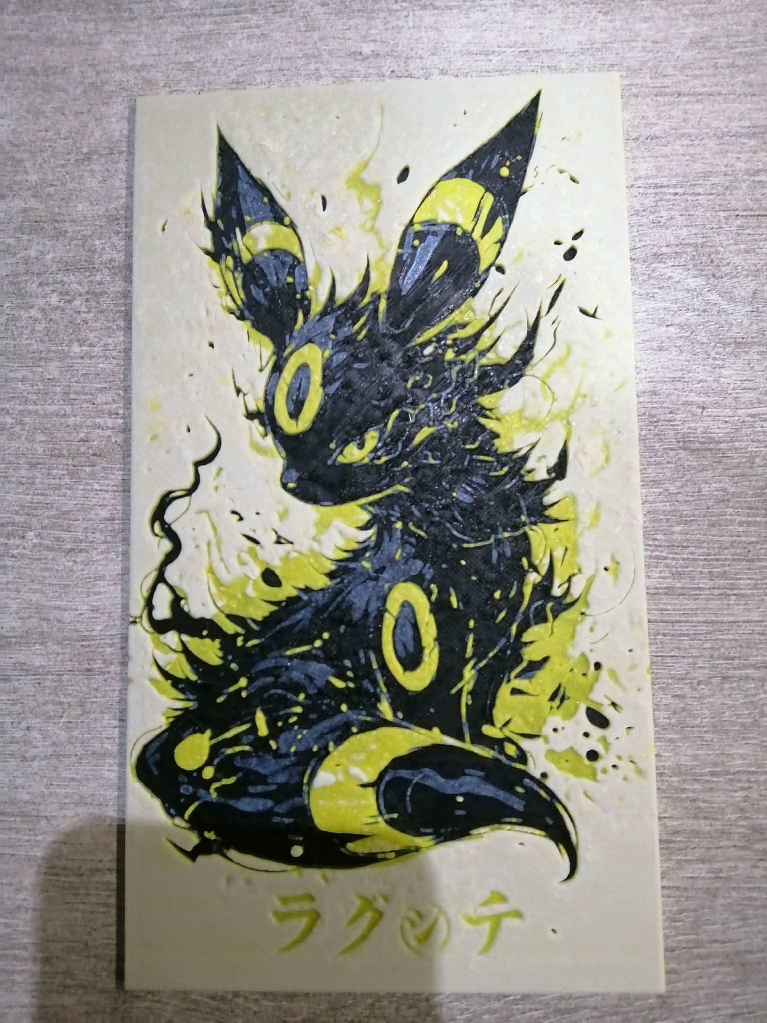 Mẫu Noctali dạng Hueforge. In bắt đầu với Black, rồi đổi filament theo các mốc layer: #8 sang Blue Gray, #13 sang yellow, và từ #22 chuyển sang White cho tới hết để ra đúng hiệu ứng màu.