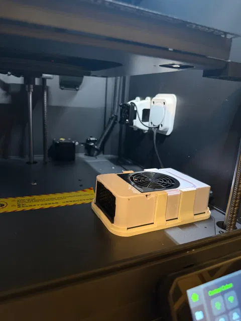 Mình tháo bỏ phần giữ cuộn filament vì đang dùng hộp sấy (dryer box). Sau khi đi thêm dây cho quạt circulation 40mm và mini heater, mình muốn có một cái plug để bịt lỗ đó lại. Nắp plug dạng snap-in có 4 ngàm (tabs) giúp đóng quanh các sợi dây, vừa gọn dây hơn vừa giữ nhiệt bên trong.