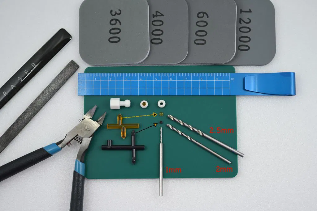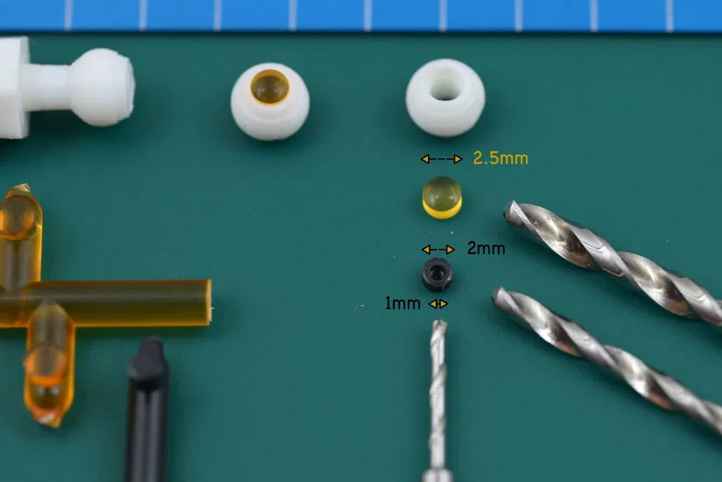 1. In eyeball (một mình hoặc kèm support kiểu hex bit), rồi dùng mũi khoan 3mm/2.5mm để khoét/chỉnh nhẹ ổ nông phía trước cho iris.