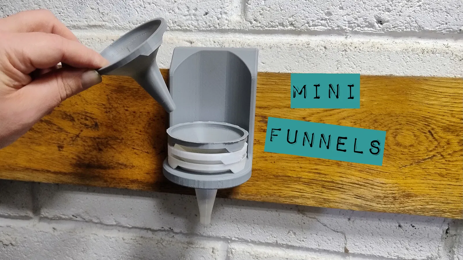 Bộ phễu mini thành mỏng, in nhanh và lồng/xếp chồng gọn gàng, phù hợp làm đồ tiêu hao trong workshop để rót epoxy, keo, sơn, dầu… Kèm mount treo theo hệ French cleat.