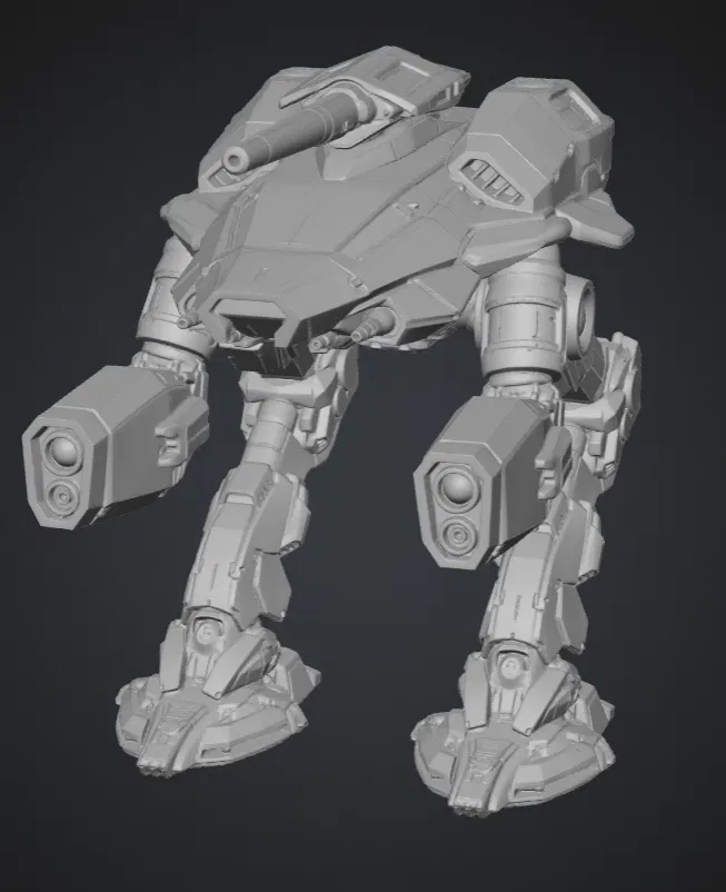 Mẫu BattleTech Marauder (mesh tạo bằng AI từ bản vẽ line) có độ chi tiết cao, nhìn chung không thấy lỗi. Khi in FDM, có thể dùng support tối thiểu nhưng nên cân nhắc hướng đặt: đặt model nằm ngửa khi in.