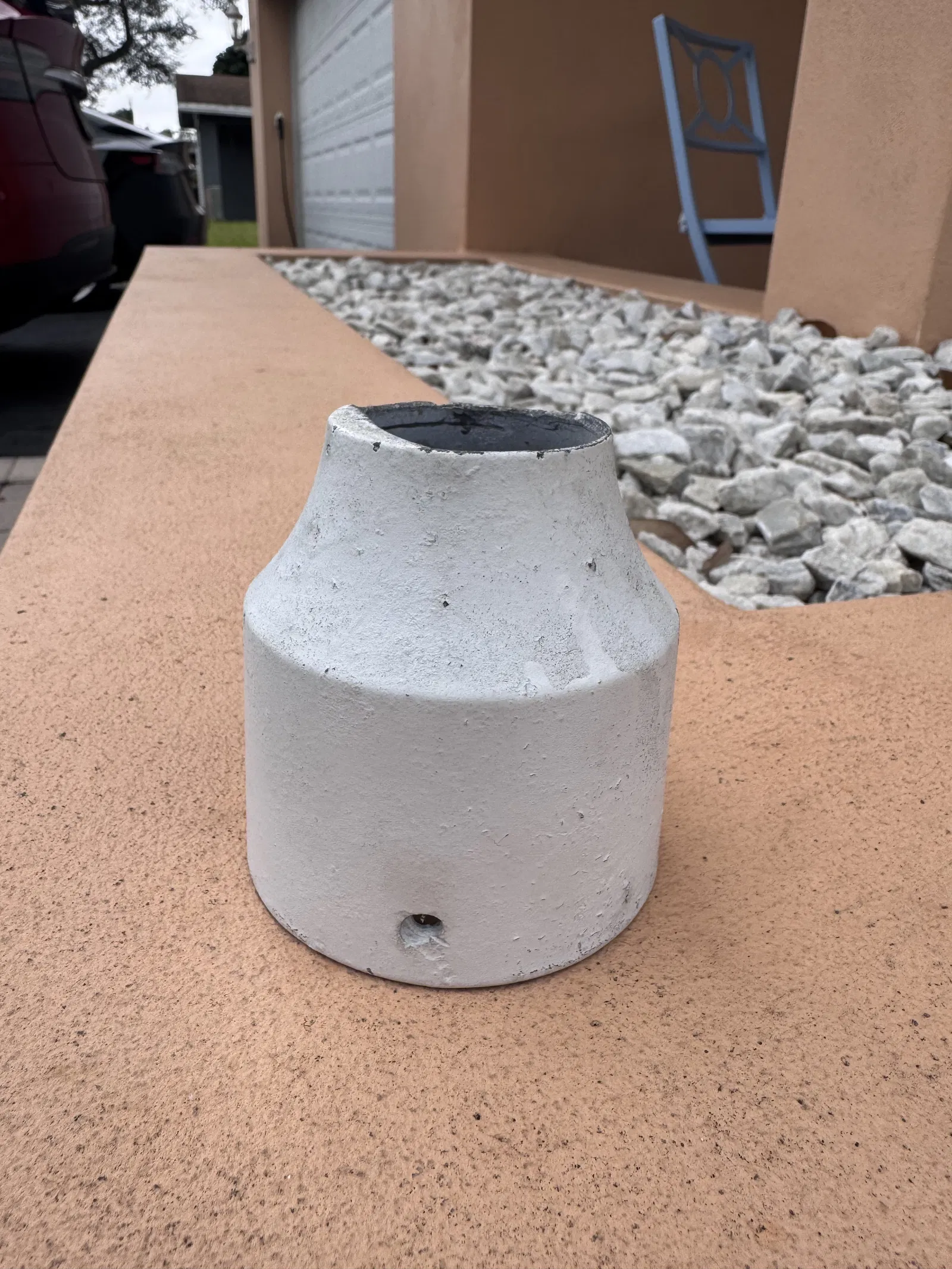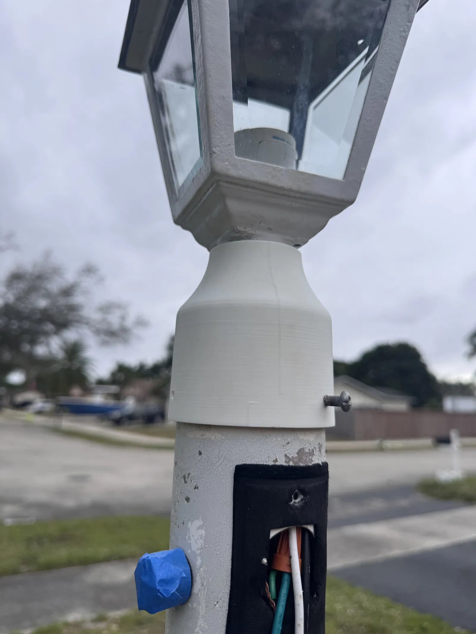 Mấy đứa nhỏ nhà mình đá bóng vô trụ đèn ngoài sân, làm gãy mất phần trên của cái ngàm/đế gắn trụ đèn. Mình tìm hoài mà không thấy món thay thế nào nhanh, cũng không thấy sản phẩm màu trắng nào hợp để thay hoặc nâng cấp. Vậy nên mình quyết định tự dựng model một cái thay thế, chuyện này để bữa khác tính tiếp.
