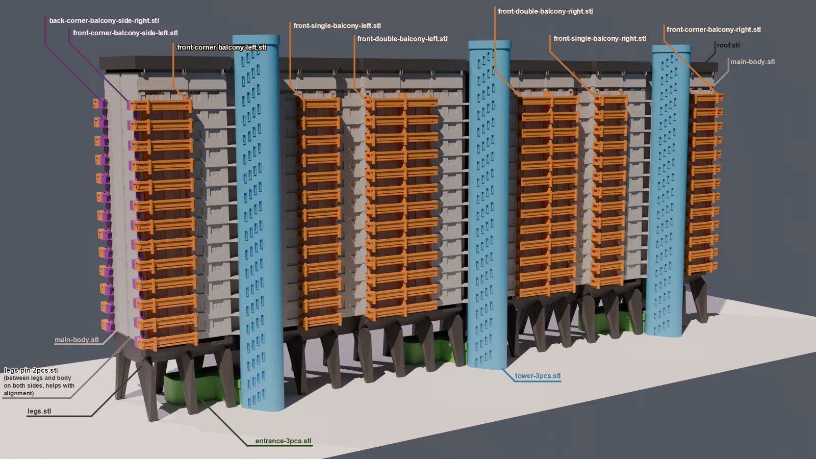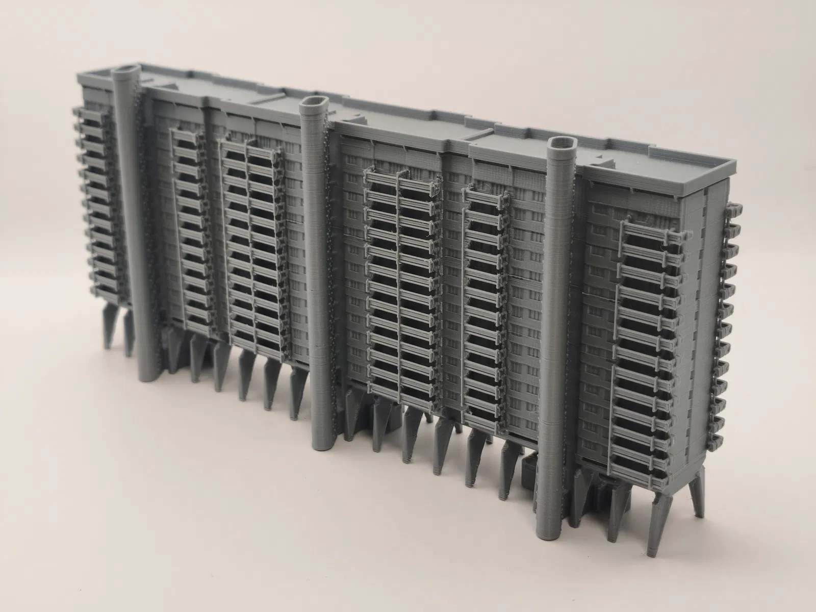 Mô hình in 3D House of Aviators “The Centipede” ở Moscow (tòa nhà 40 “chân”), dựng chủ yếu từ ảnh nên không 100% chính xác nhưng khá sát thực tế. STL đã xoay hướng/scale sẵn, lắp ráp nhiều phần và dán keo.