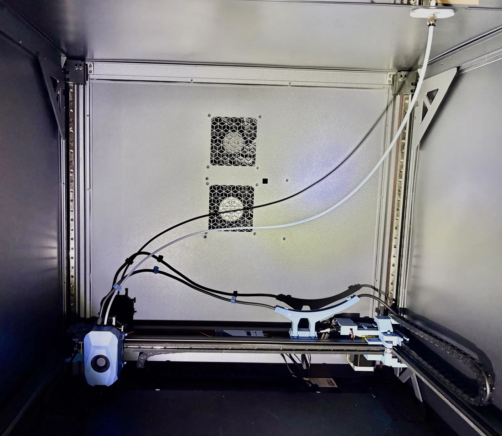 Nắp enclosure cho Sovol SVO8 MAX, dùng đầu nối PTFE kiểu PC4-M6 vặn từ phía dưới nắp. Có thể bypass aux feeder và chạy ống PTFE ngắn trực tiếp từ extruder lên nắp.