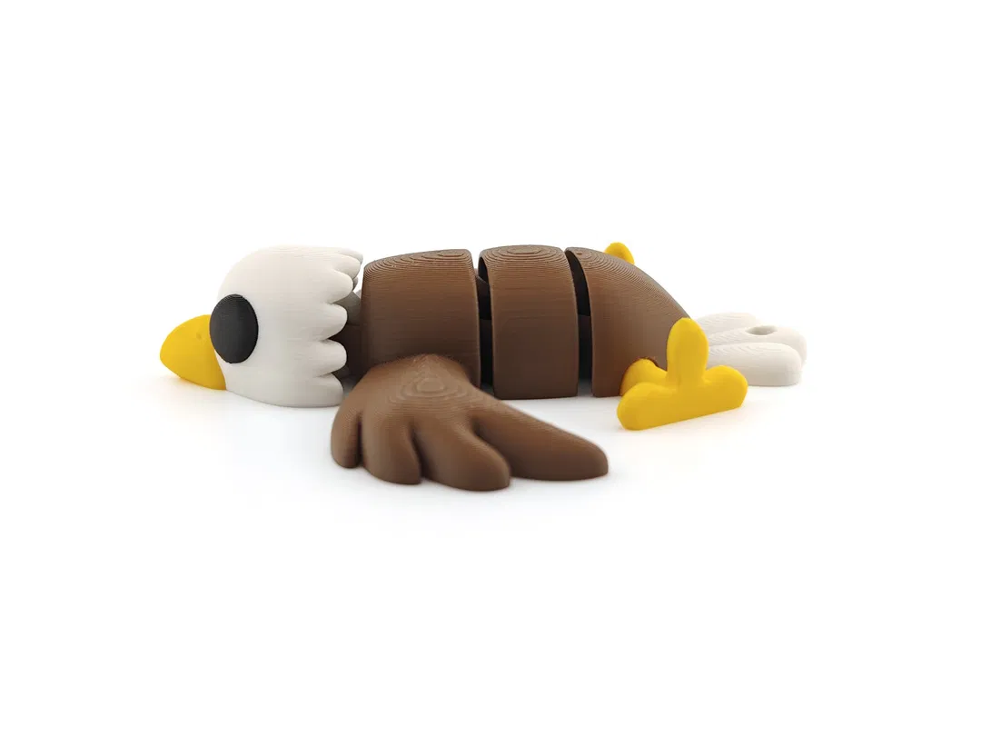 Mẫu Đại bàng (Eagle) dạng articulated/flexi. Đi kèm 3MF multicolor, STL dễ sơn multicolor, bản keychain và file split-color cho máy in single-color (không cần AMS).