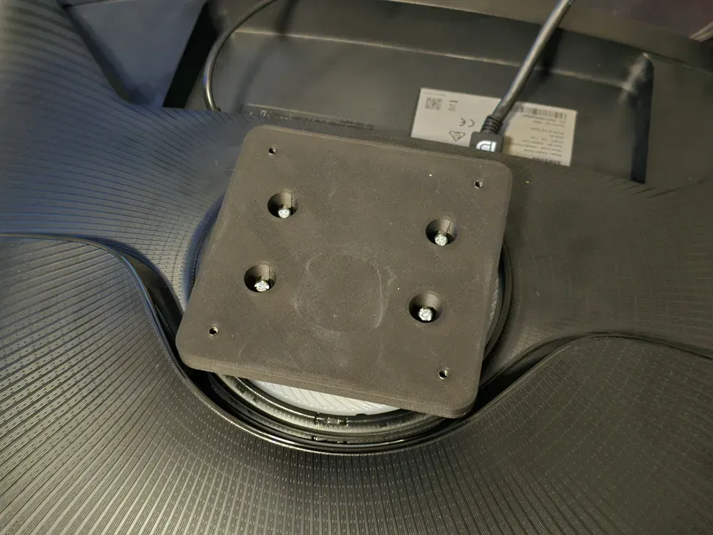Các mẫu dưới đây dùng để chuyển giao diện ngàm Samsung Odyssey trên màn hình từ cấu hình gốc (dùng với arm zin) sang chuẩn phổ biến hơn là Vesa 100x100. Mình in bản của mình bằng PLA-CF màu đen để tăng độ cứng/vững.