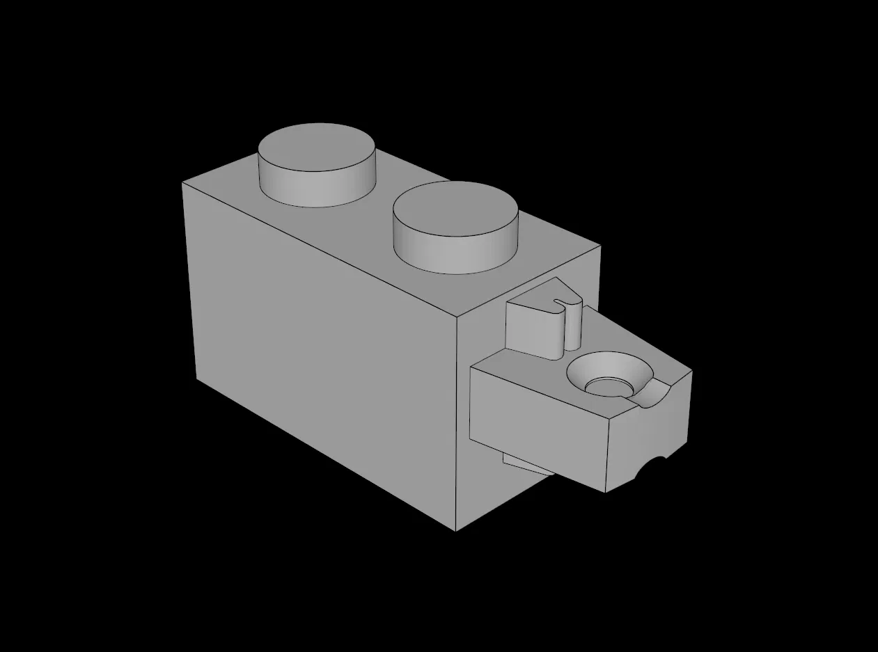 Mẫu 3D “Lego Compatible (30541.dat) Hinge Brick 1 x 2 Locking with Single Finger On End Horizontal” tương thích với hệ thống LEGO, phù hợp để lắp ghép các chi tiết bản lề theo chuẩn LEGO.