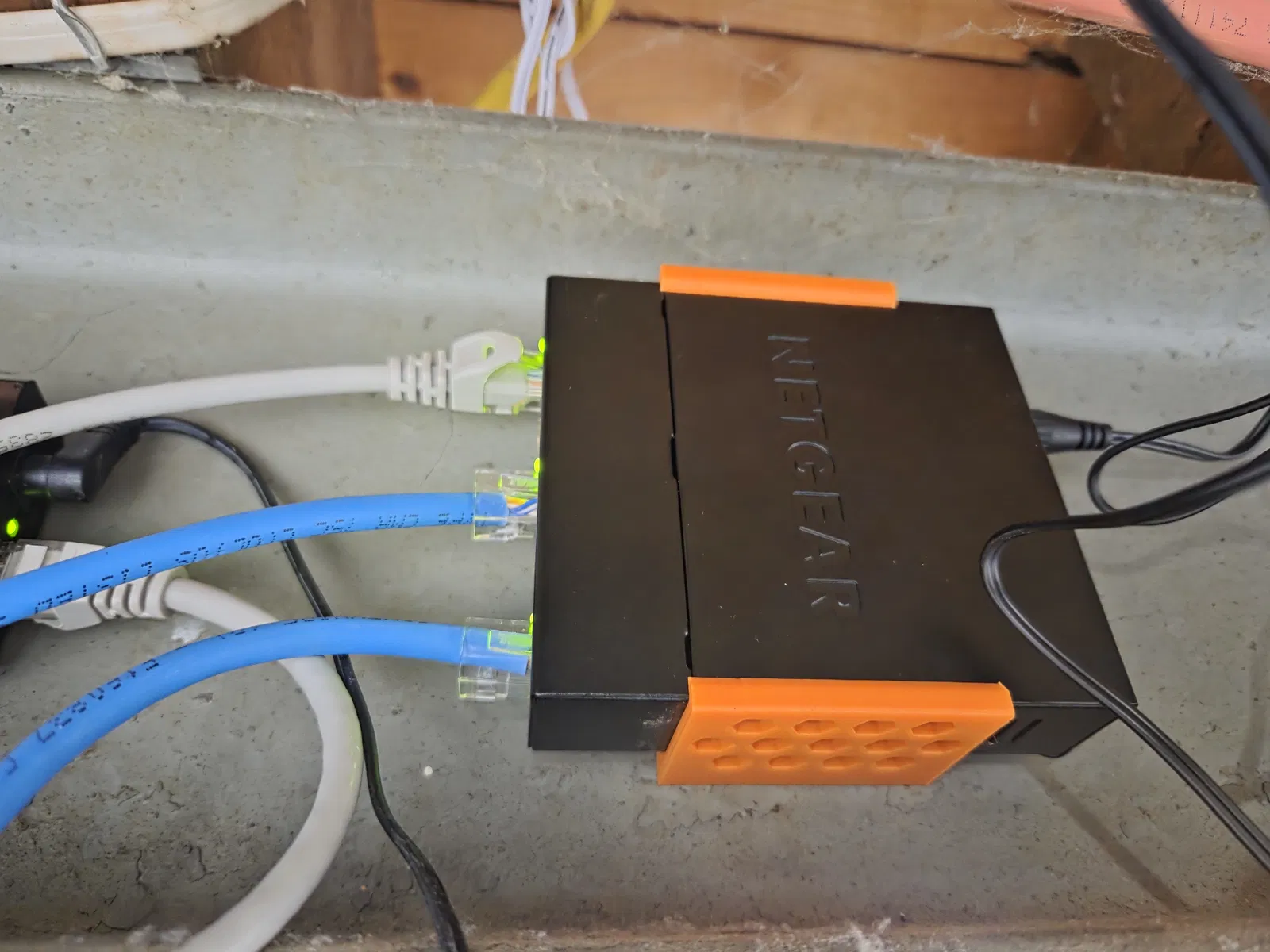Một cái ngàm (mount) cho switch Netgear GS205, có tích hợp 4 nam châm để gắn lên bề mặt thép.