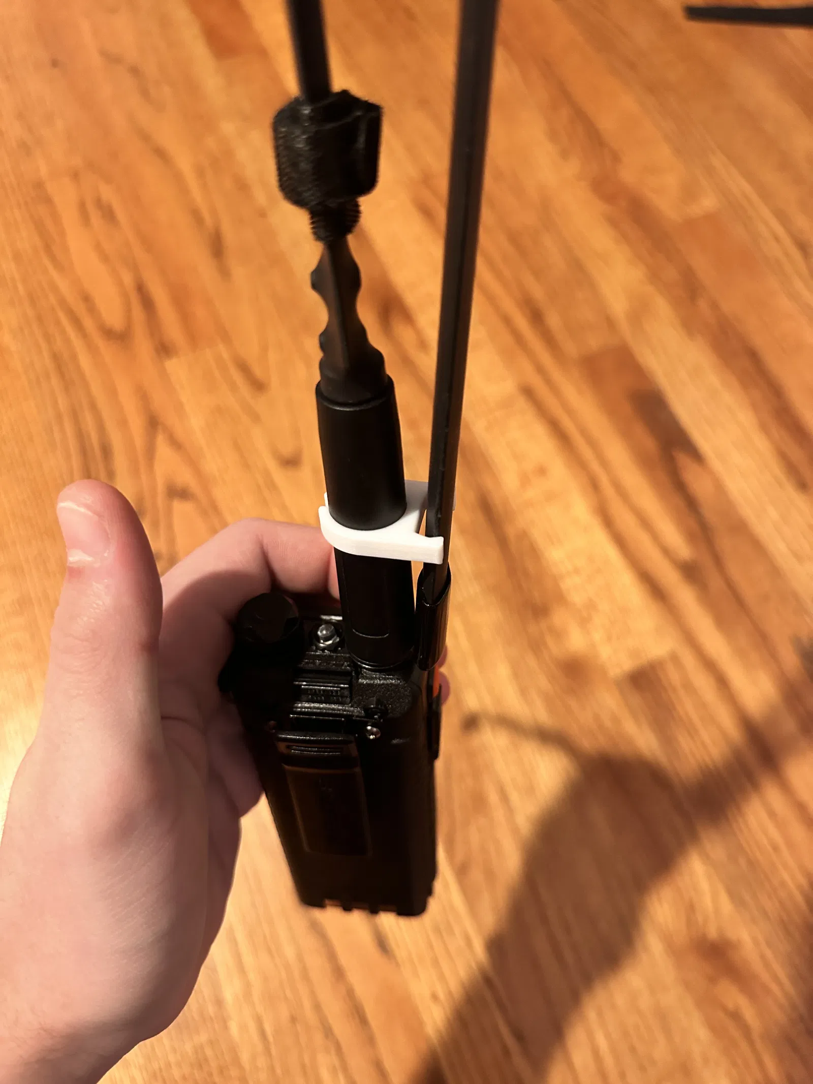 Mẫu kẹp anten nhỏ gọn cho các anten gập phổ biến trên nhiều máy bộ đàm, đặc biệt Baofeng UV-5R. Lắp nhanh bằng cách luồn phần hở của kẹp vào anten và trượt xuống; các cạnh đã chamfer để tránh làm trầy anten.