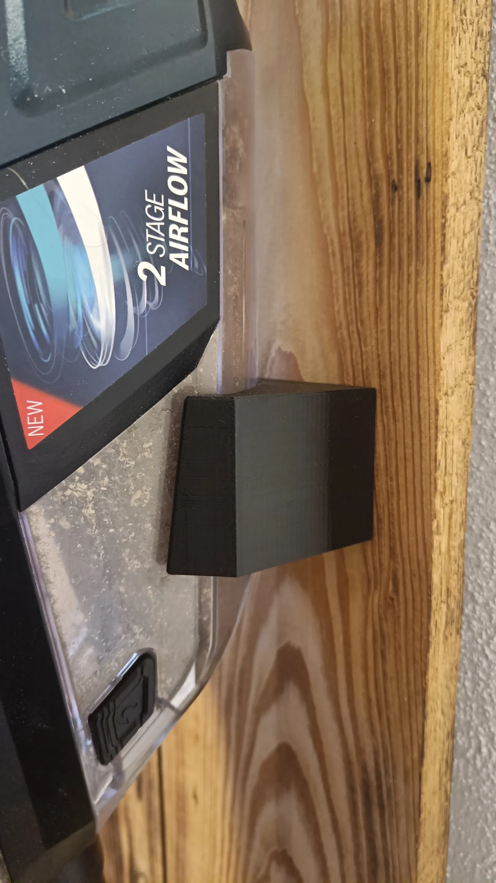 Mình cần một cách gọn gàng để cất cái máy hút bụi Bosch, khuất tầm nhìn phía sau cửa trượt kho đồ (pantry), mà tìm hoài không thấy wall mount nào vừa khít. Vậy là mình tự thiết kế luôn!
