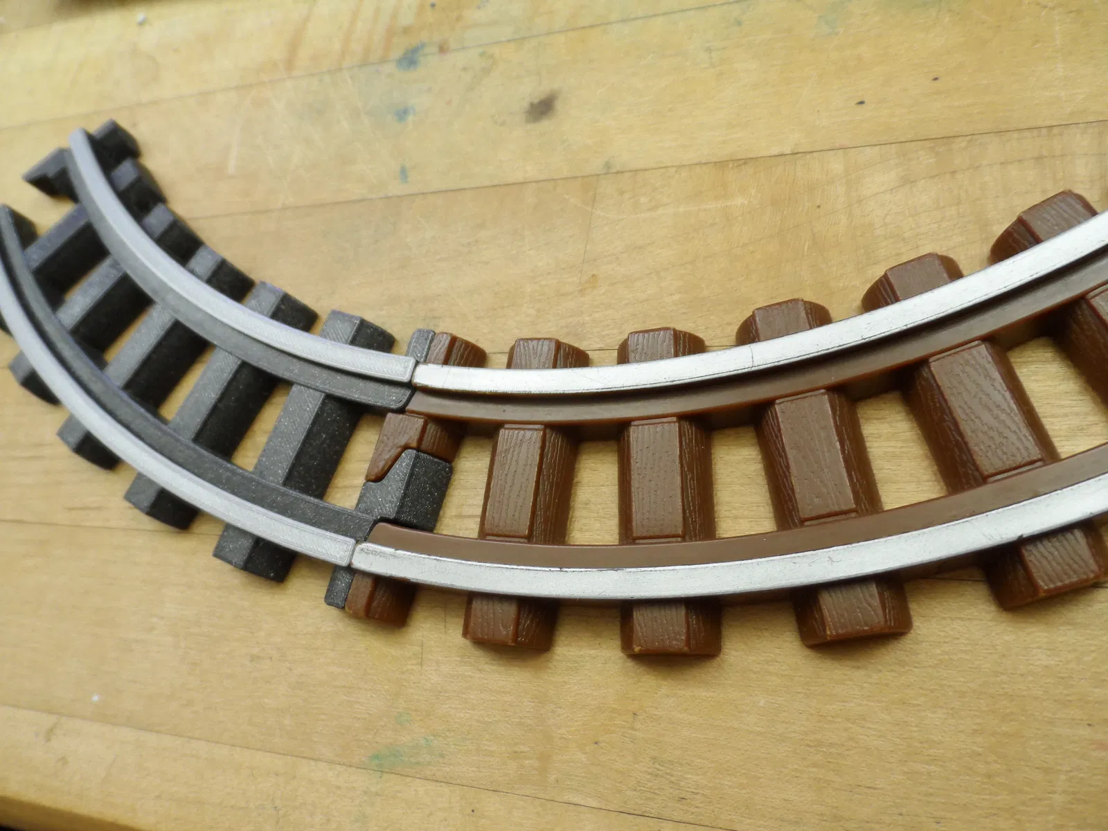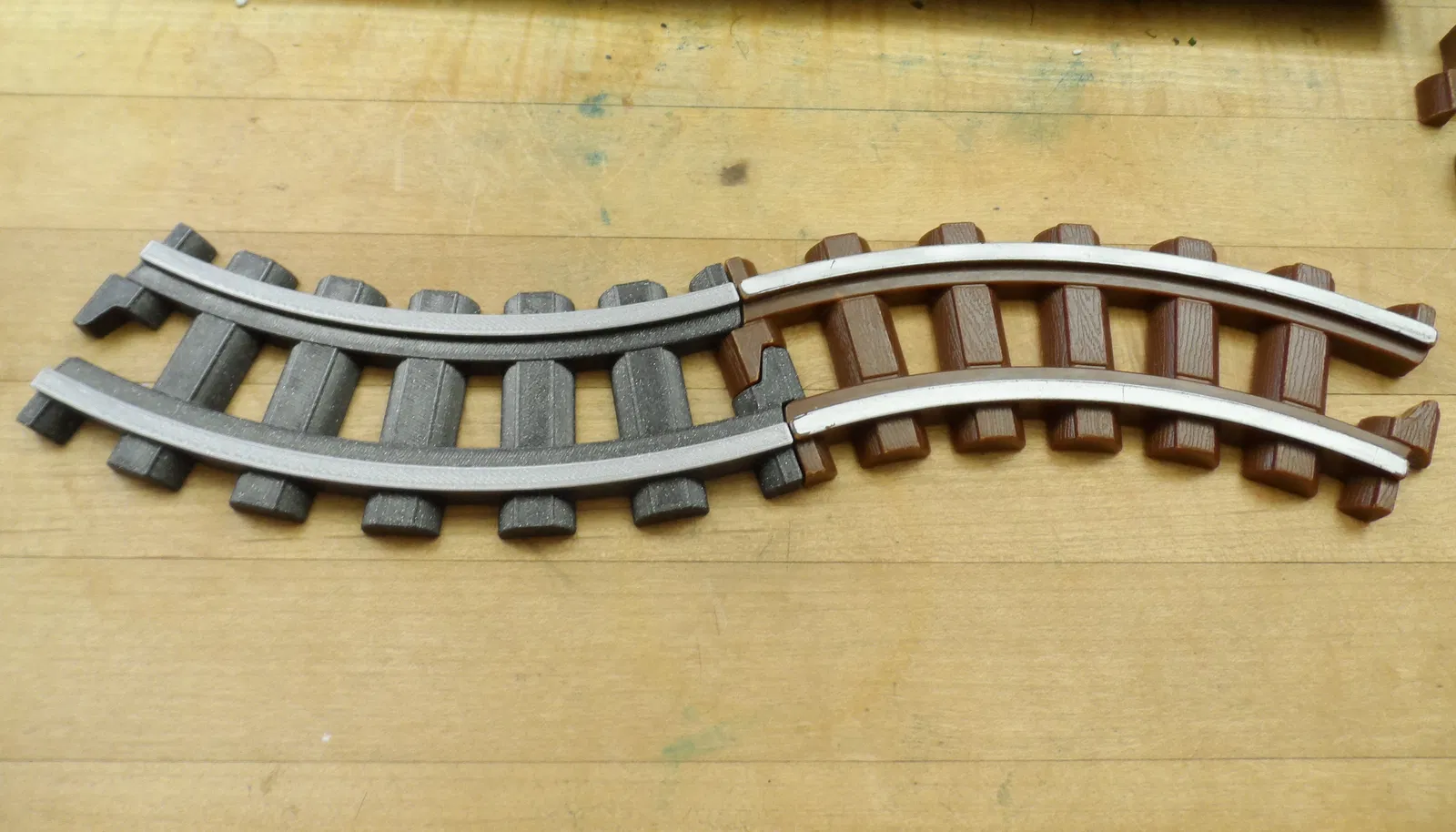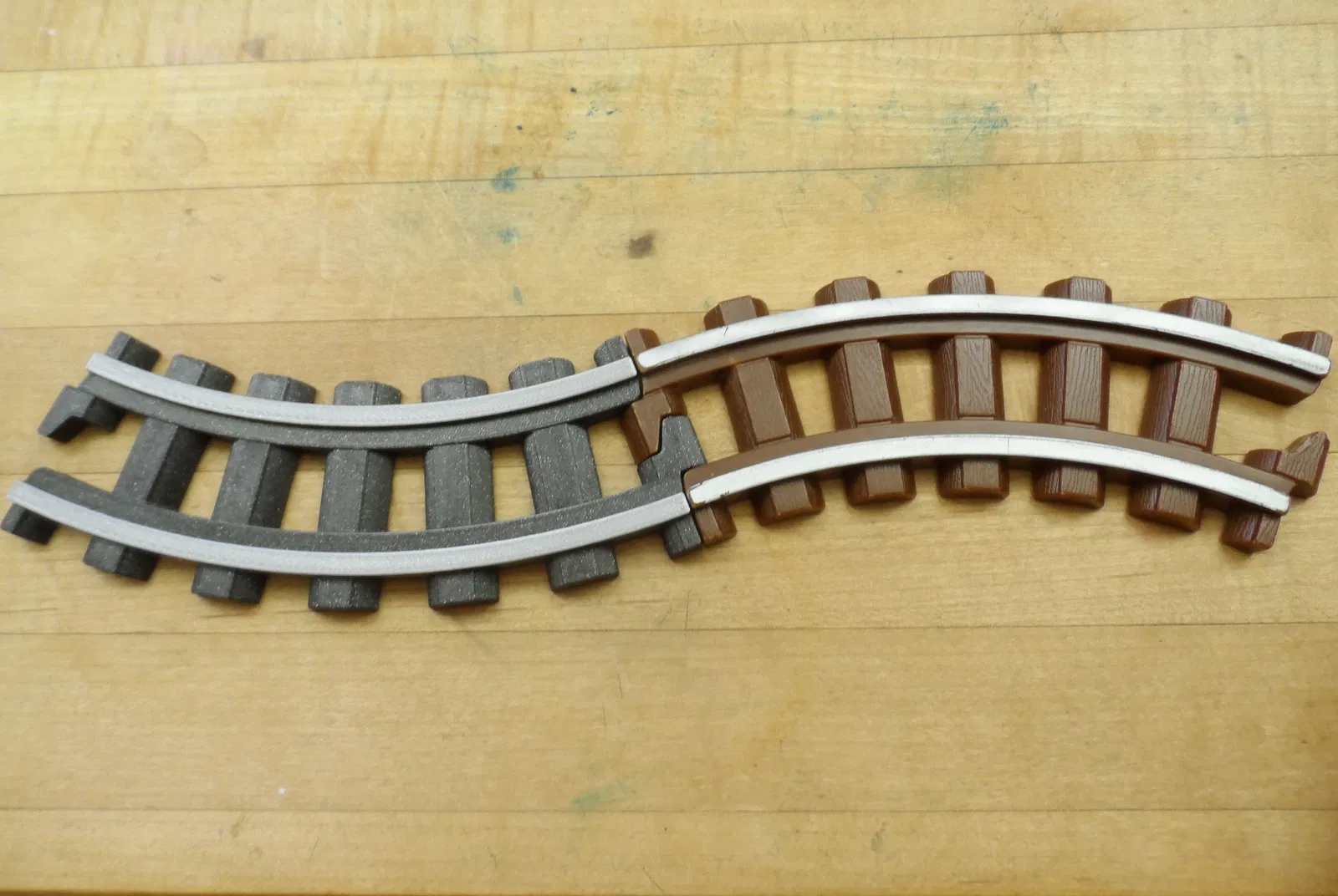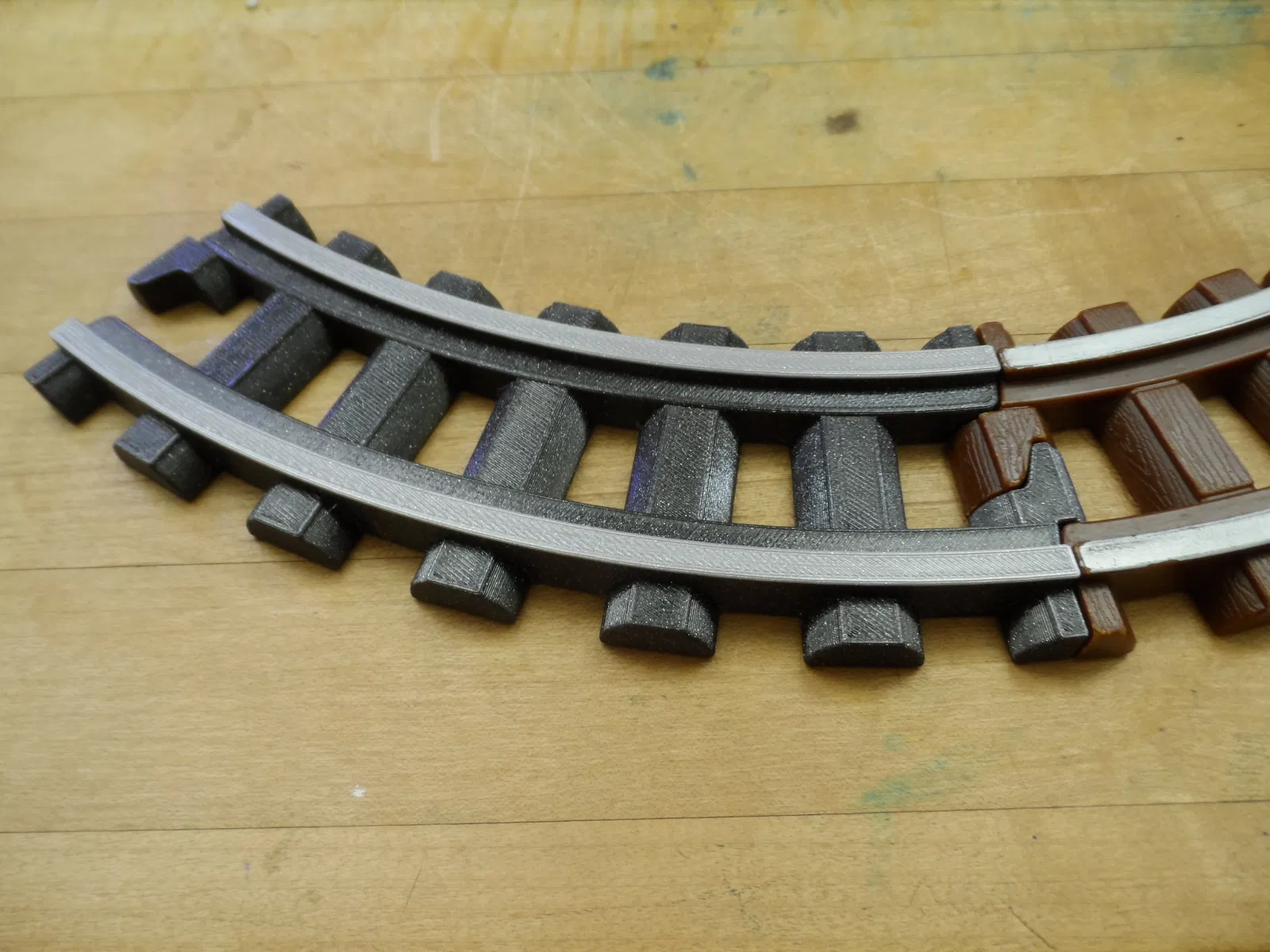 Mẫu khúc cong thay thế cho đường ray tàu hỏa Lincoln Log, gắn vừa khít khi bộ bị thiếu chi tiết. In thử trên Prusa MK3 S+ với PLA mặc định, .2 speed; đổi màu tại 11.4 và slice bằng PrusaSlicer.