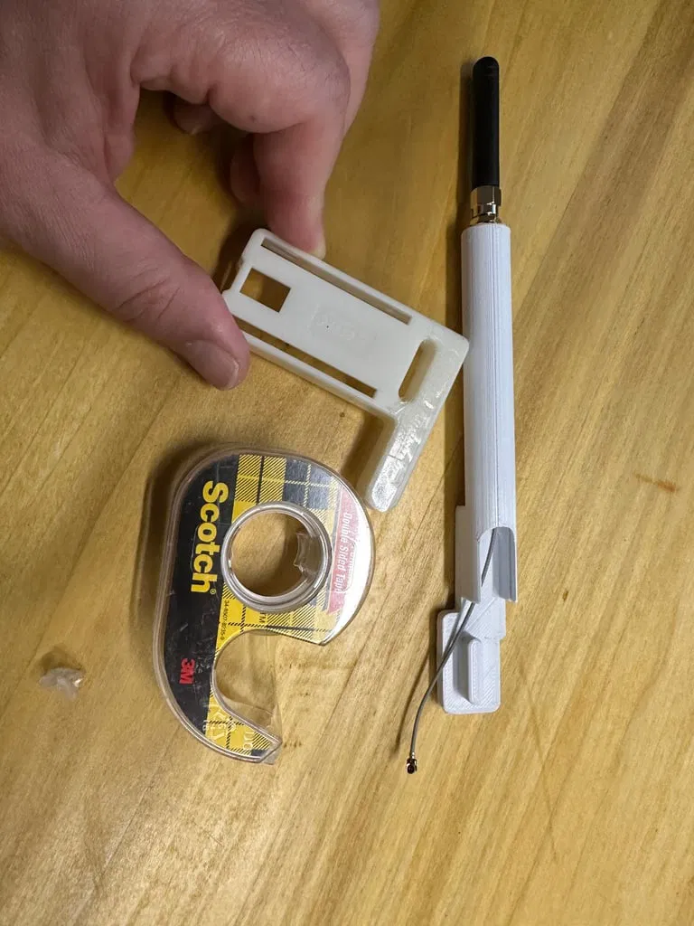 Khoan một lỗ nhỏ ở phần chóp của vỏ Heltec chính hãng để luồn dây coaxial của anten. Dùng băng keo hai mặt (Scotch) để dán phần extender vào vỏ Heltec. Nếu muốn chắc hơn thì quấn thêm băng keo một mặt quanh chỗ nối.