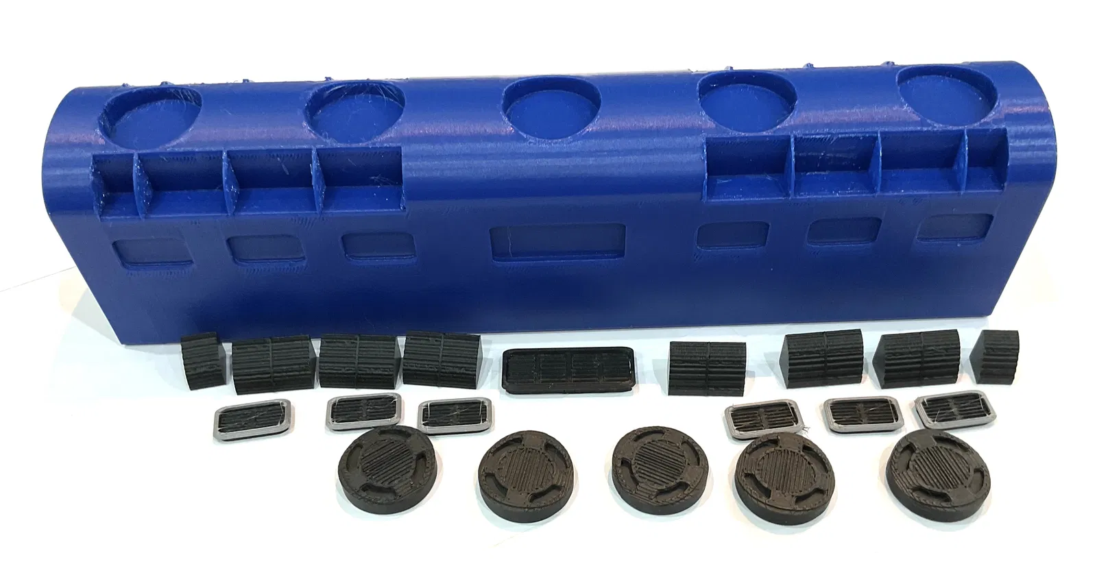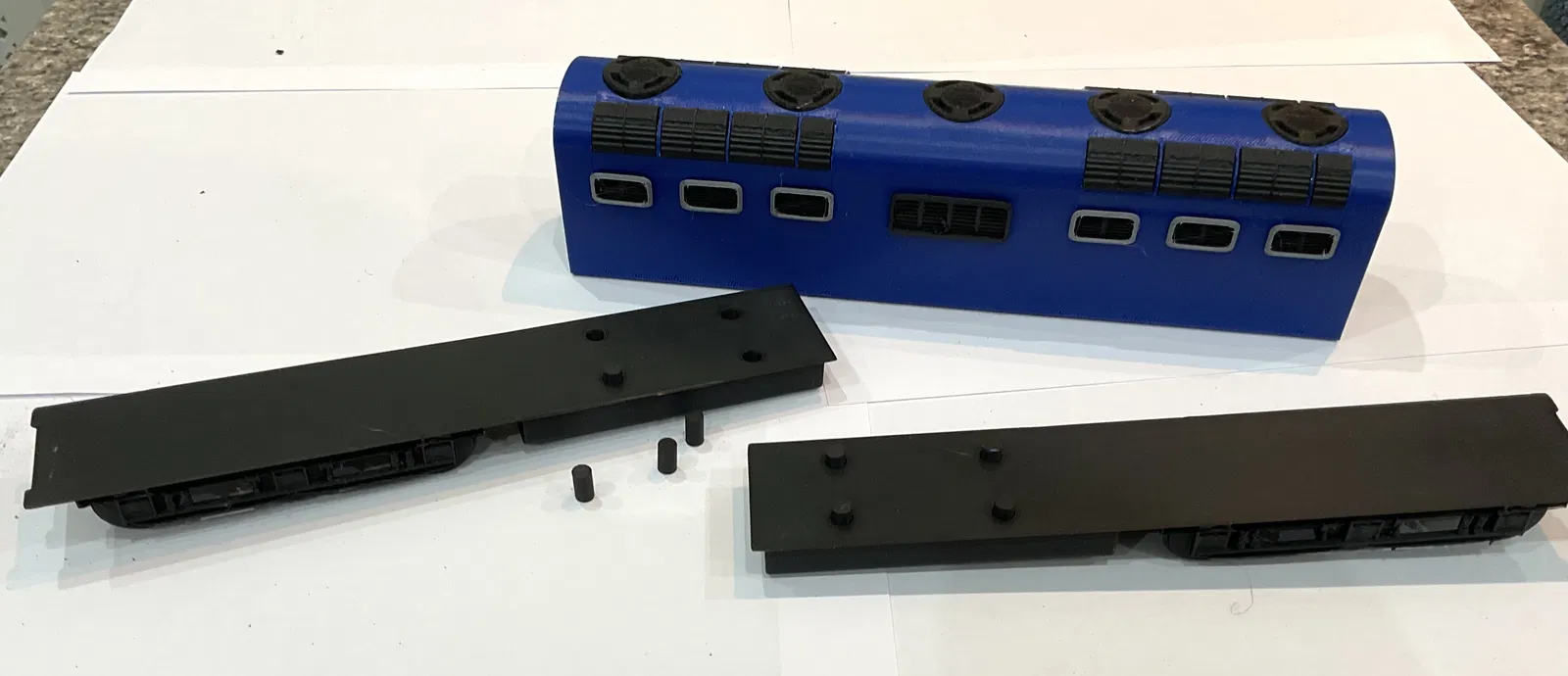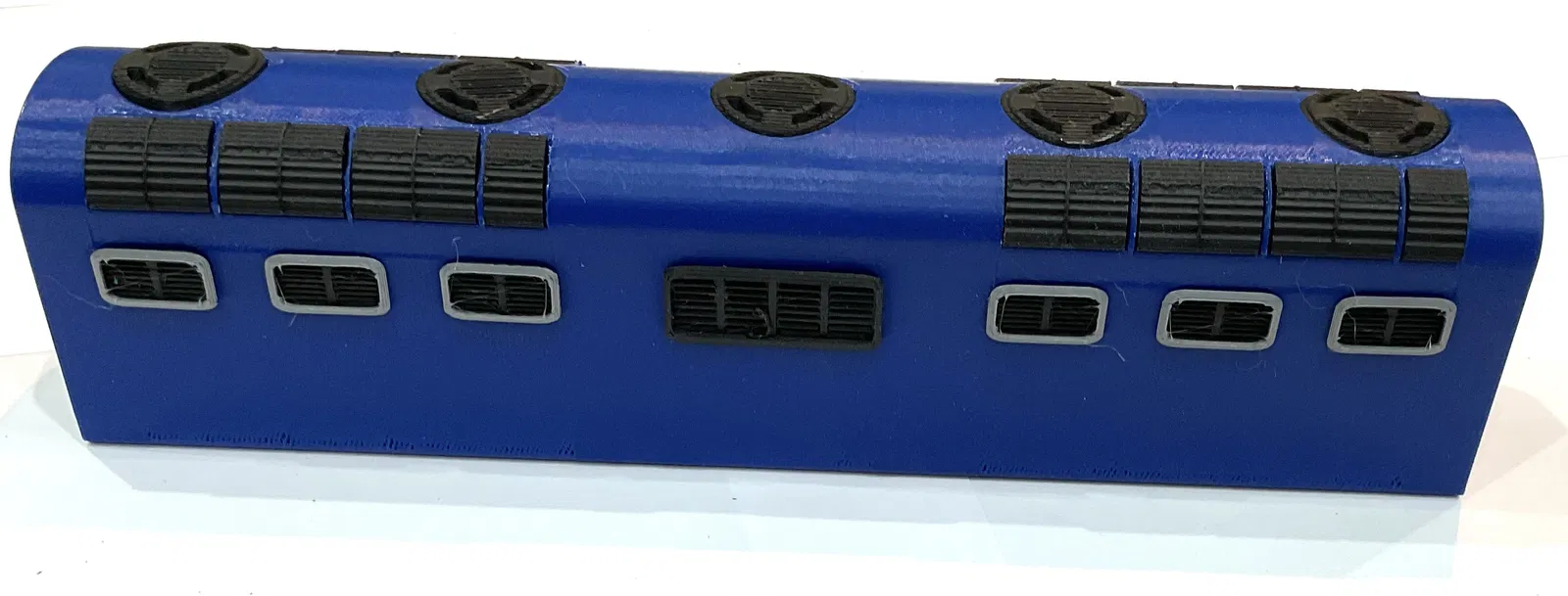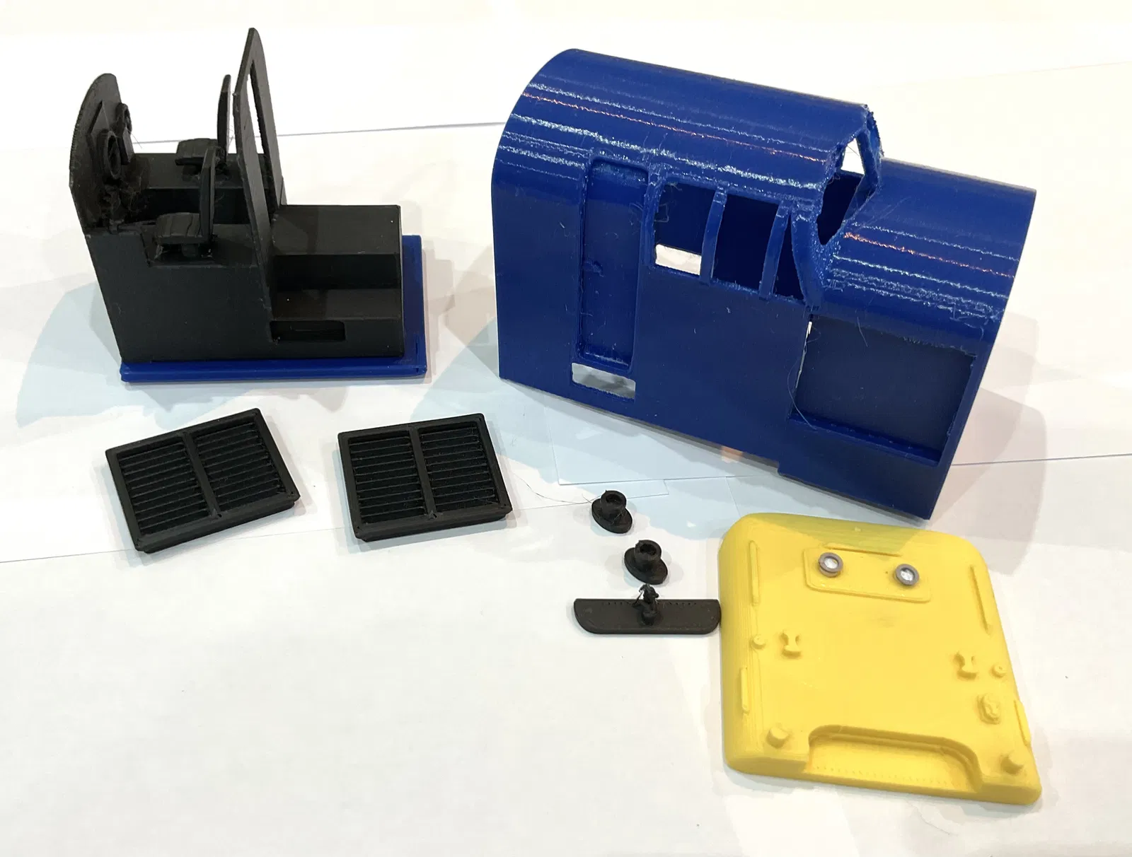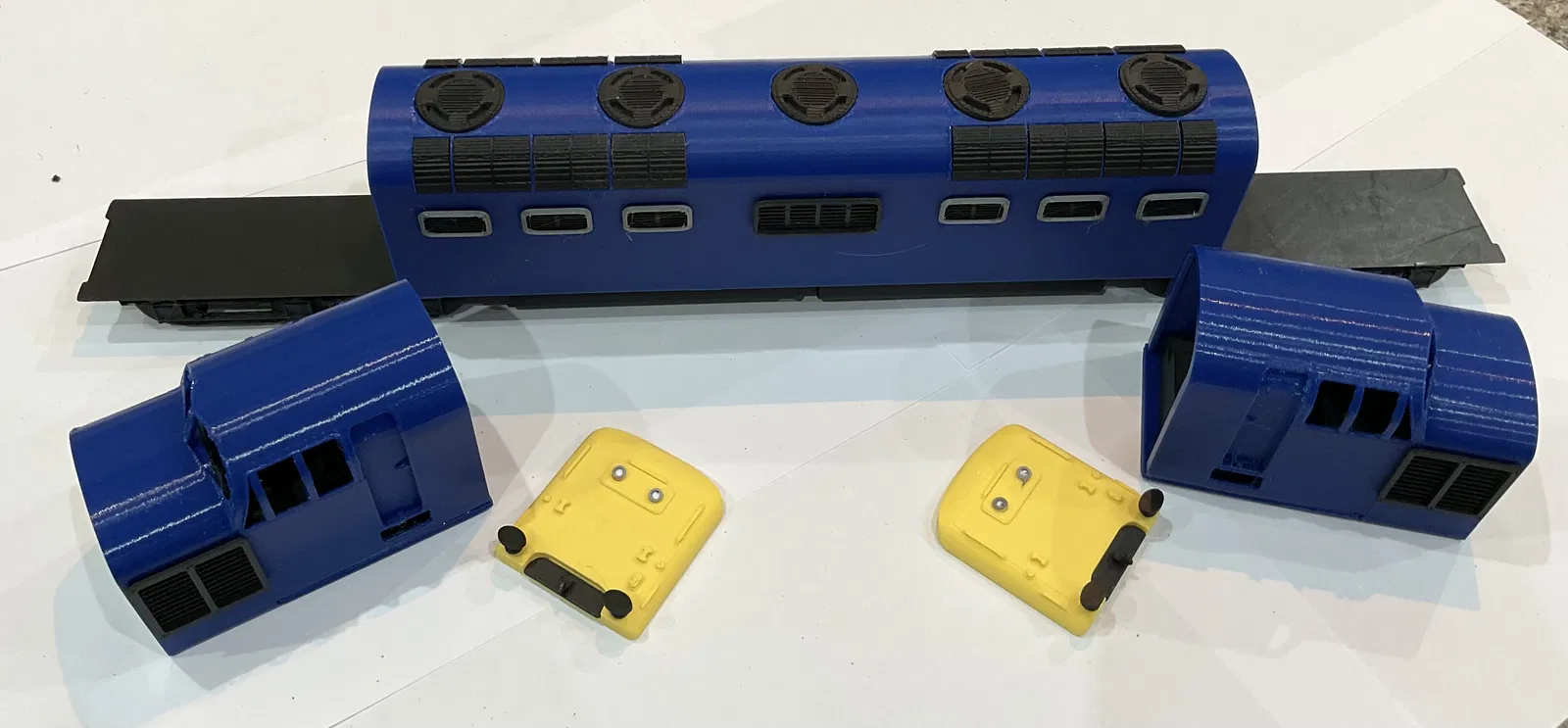 Phần thân giữa và phần cabin được in dựng đứng kèm supports. Phần chassis và wheels, toàn bộ các vents, dowels, buffers và hook plate được in bằng matte black, không dùng supports.