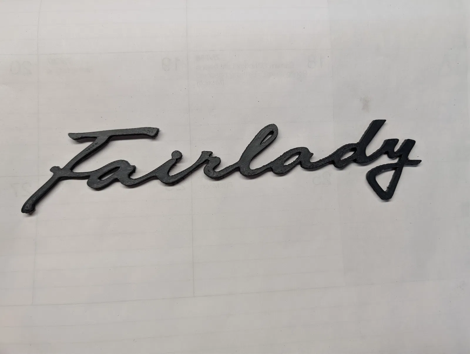Logo chữ viết tay “Fairlady” cho Datsun Roadsters. Mình làm dựa trên vài tấm hình coi được mà mình kiếm được để tham khảo, nên mình không dám chắc model này chính xác hay đúng tỷ lệ/kích thước thực tế tới mức nào.