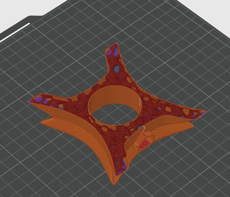 Ảnh giới thiệu là hình render, nhưng việc in đã được mô phỏng trong slicer để đảm bảo ra kết quả ổn. Nhờ làm nhiều mẫu trước đó, mình có thể đánh giá rằng nếu bạn dùng các gợi ý thông số của mình thì bản in sẽ đẹp. Bạn có thể xem ảnh mô phỏng slicing trong phần hình.
