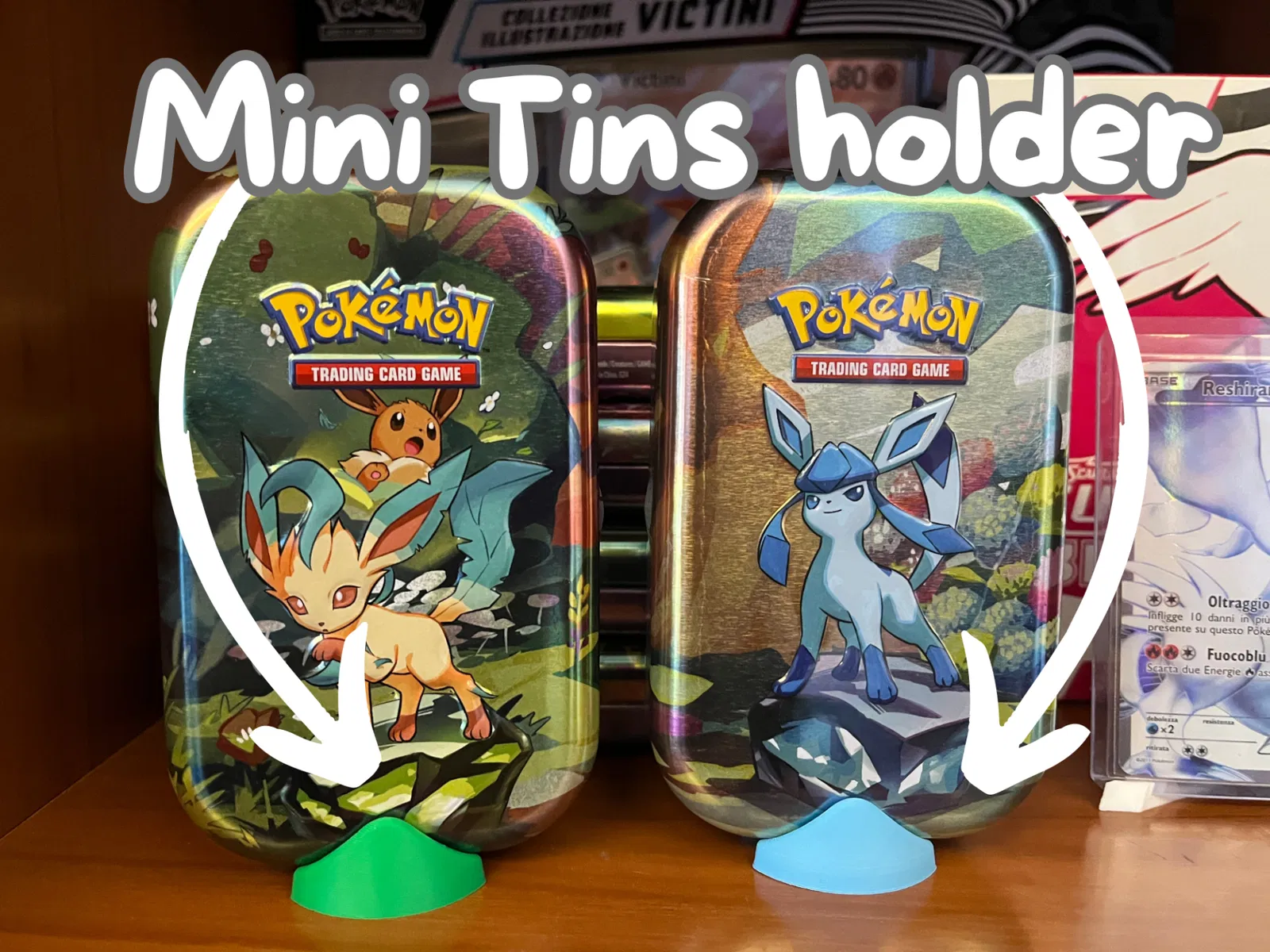 Mình làm 2 phiên bản của cái stand này cho Pokemon mini tins: bản màu xanh dương nhạt dùng cho mini tins còn seal (chưa mở), còn bản màu xanh lá dùng cho mini tins đã mở.