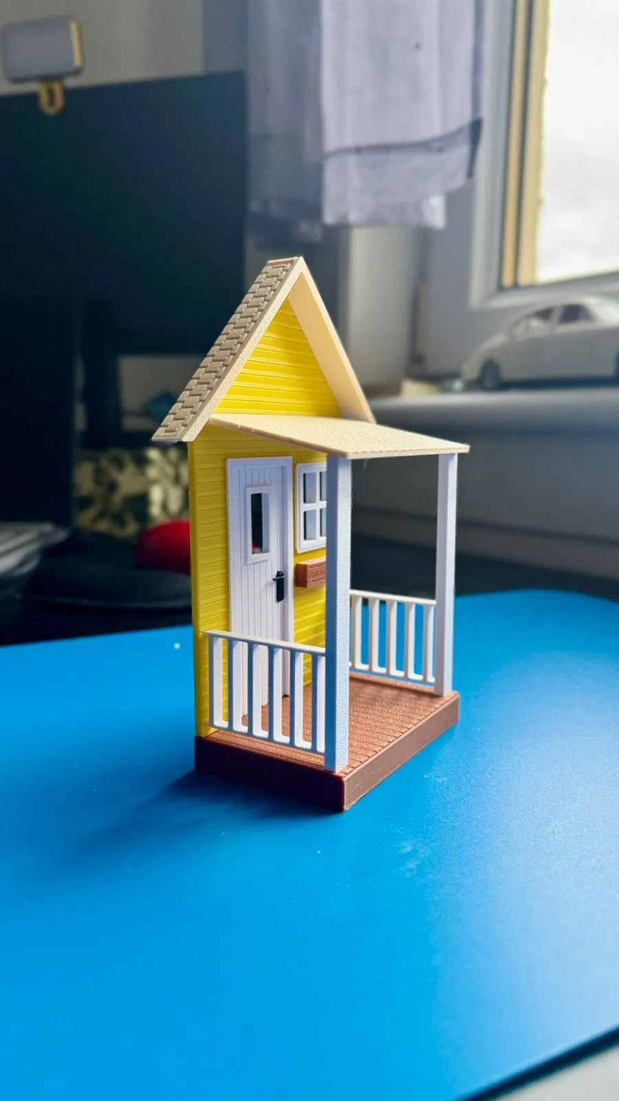 Ngôi nhà nhỏ này mình tự thiết kế hoàn toàn và 3D print, ưu tiên sự đơn giản và dễ dùng. Các chi tiết được thiết kế kiểu bấm khớp (click) vào đúng vị trí để lắp rất nhanh, chỉ cần một ít keo để hoàn thiện là xong. Không cần AMS, nên quá trình in gọn gàng, dễ tiếp cận.