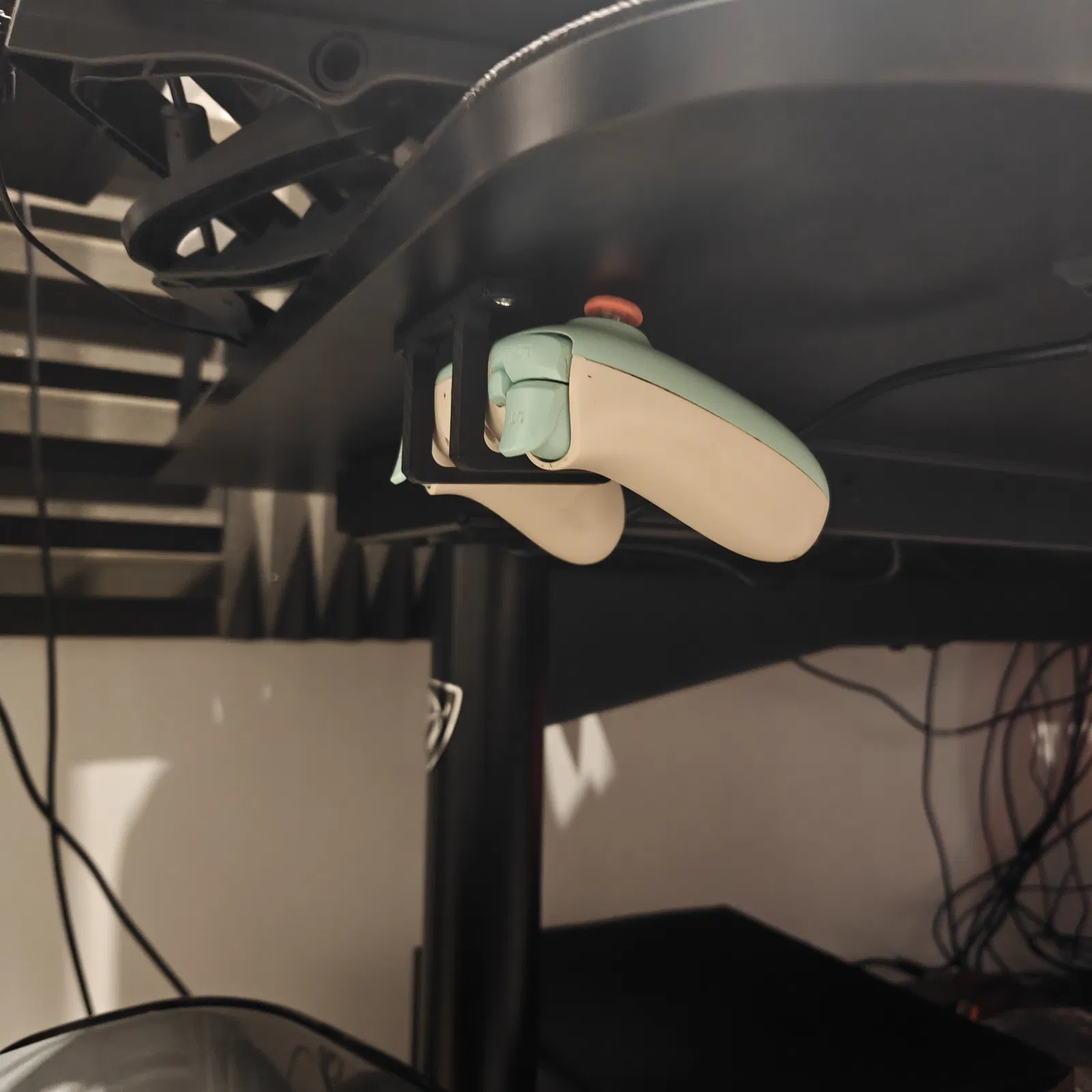 Giá treo joypad gắn dưới mặt bàn Arozzi Arena (+Moto), tận dụng các lỗ có sẵn bên dưới. Chỉ cần dùng vít M4 dài 1cm để bắt vào vị trí trống, tương thích đa số joypad (ví dụ 8BitDo 2C).