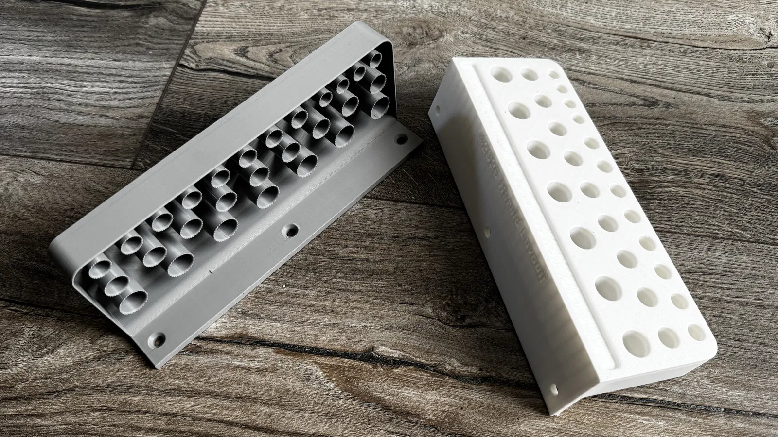 Để sắp xếp gọn gàng các cây screwdriver của mình, tôi thiết kế một cái holder đơn giản có thể gắn lên tường bằng 3 con vít. Tôi in bằng PLA và thấy rất chắc chắn. Bạn cứ thoải mái chỉnh sửa thiết kế theo ý mình.