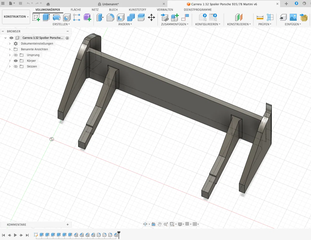 Mẫu cánh gió sau (rear spoiler/wing) cho slotcar Carrera 132 Porsche 935/78 “Martini Racing” (Digital & Evolution) tỷ lệ 1:32. Sau khi in cần chà nhám nhẹ mặt sau nơi support bám; kèm file *.f3d Fusion360 để chỉnh sửa/đổi tỷ lệ.