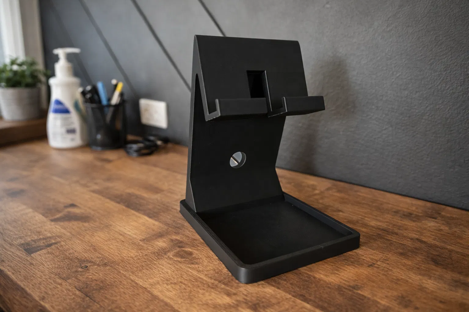 Ban đầu mình thiết kế cái này làm giá đỡ để bàn, nhưng đem dùng ở nhiều chỗ khác cũng rất ổn — bếp, xưởng, lớp học, hay bất cứ đâu bạn muốn xem rảnh tay. Thiết kế vững, đơn giản và in ra sạch đẹp.