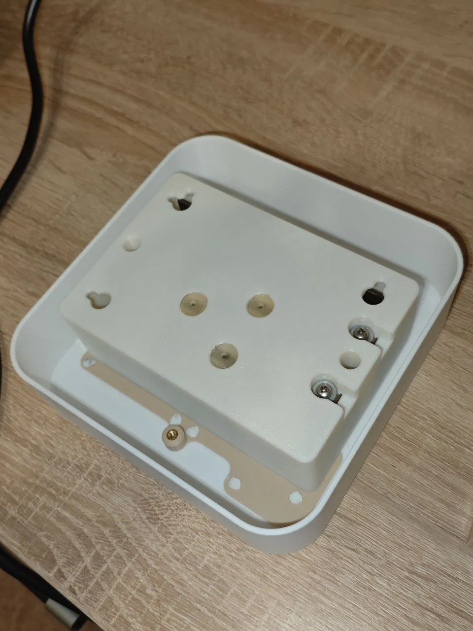 Bản chuyển đổi chuông cửa thời Liên Xô, có thêm lỗ bắt để treo ngang/dọc và nắp xoay canh hướng hình. Dùng heat-set insert M3, vít M3 theo kích thước gợi ý. Đế ASA, phần còn lại PLA.