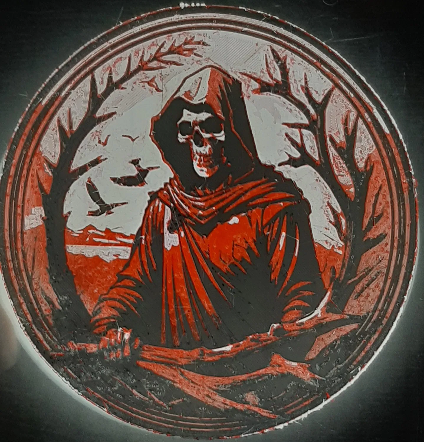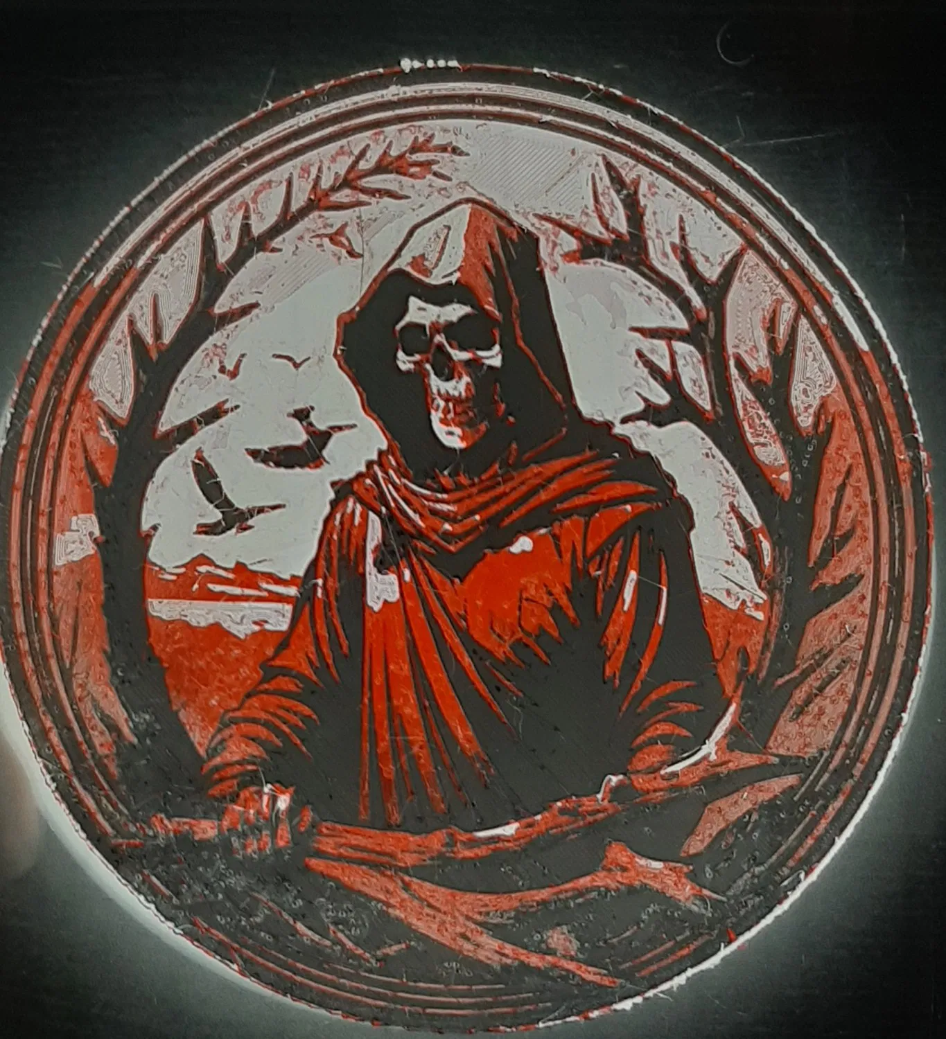Đây là một dự án Hueforge được thực hiện với chương trình Huforge. Đó là một hình ảnh của The Grim Reaper.