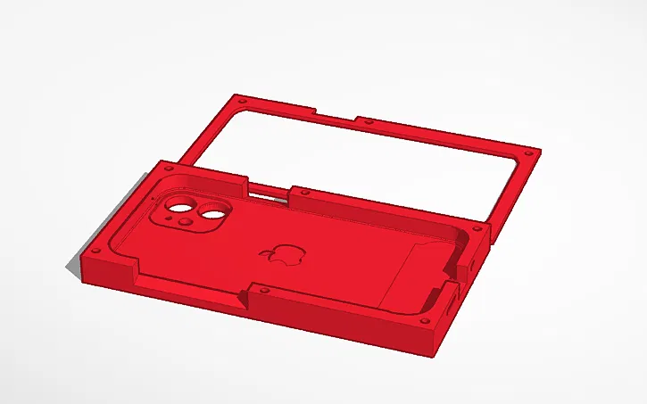 Ốp iPhone 12 mini kiểu “tank” dày 14mm, vách 5mm, dùng ốc M2 và heat-set inserts, lắp ráp hoàn toàn cơ khí không cần keo. Có phần bảo vệ camera lõm và tùy chọn tự làm diffuser cho đèn flash.