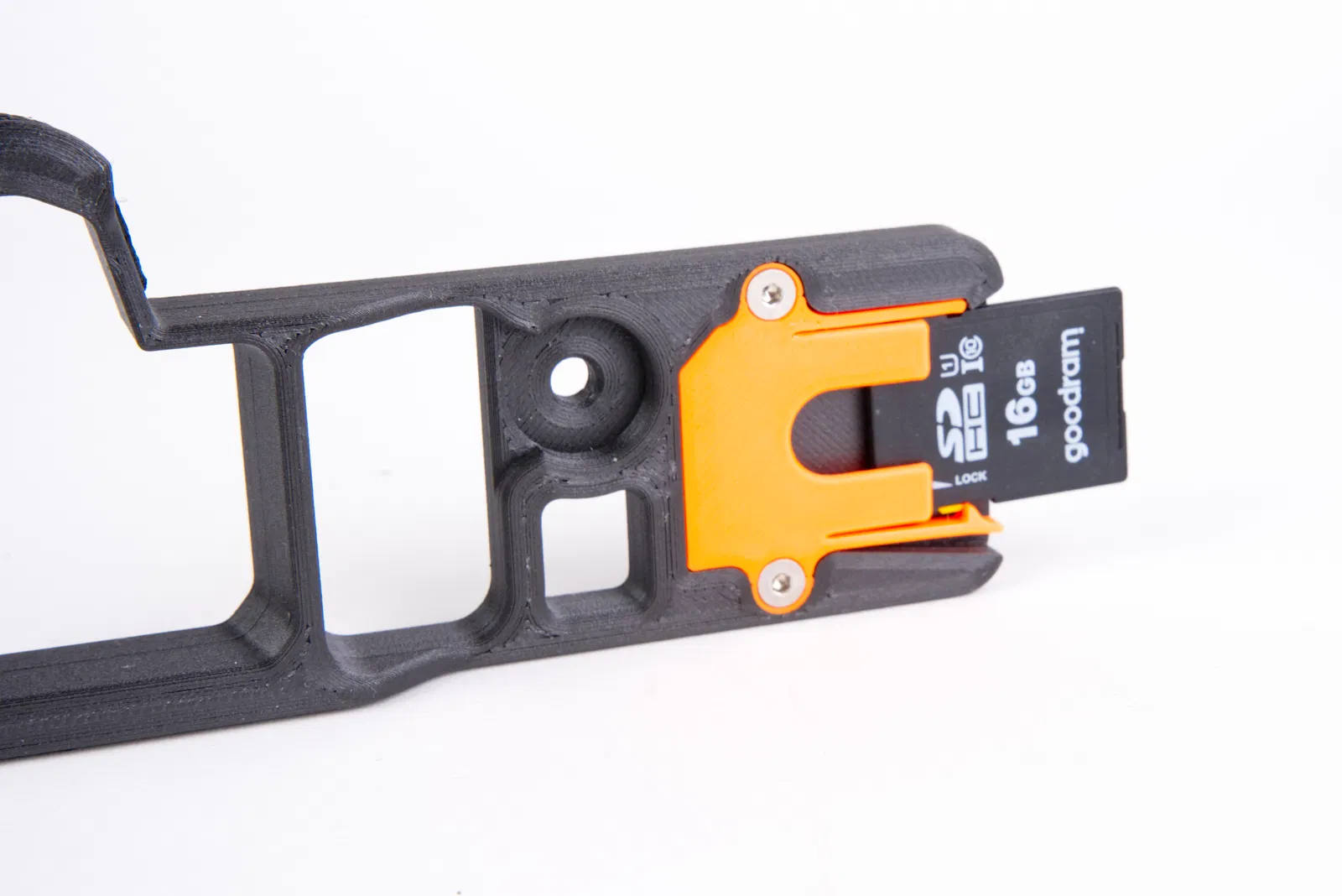 Tay cầm ergonomic in 3D dành cho Sony A7 Mark II và Mark III, giúp cầm nắm chắc tay hơn khi chụp. Mẫu được in bằng Prusament PETG Carbon fiber và Prusament TPU95A Jet Black; cần 1 ốc tripod chuẩn 1/4 để gắn vào thân máy.