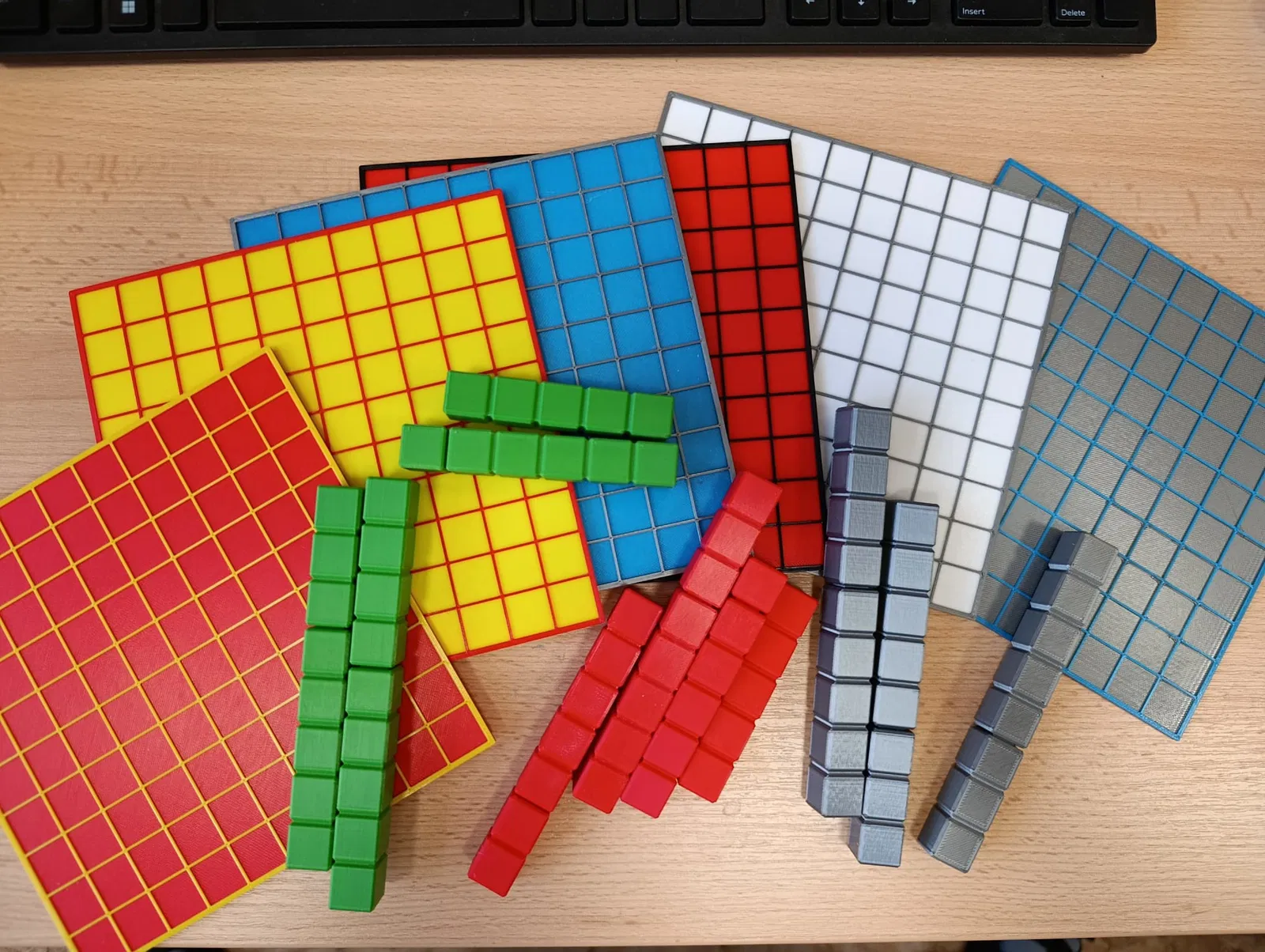 Počítadlo là dụng cụ học toán cho học sinh lớp 1: gồm mrižka (lưới) và bộ khối. Thiết kế bền, in nhanh không cần support; file lưới có auto pause để đổi filament, dễ in các phần màu khác nhau.
