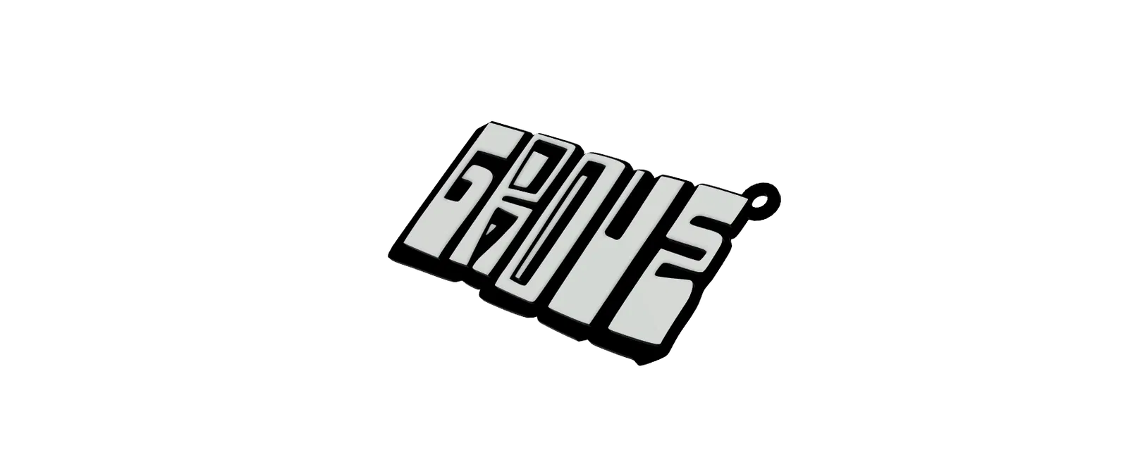 Mẫu móc khóa graffiti GROVE trong GTA San Andreas, thiết kế để in 3D và đổi màu theo từng độ cao lớp (layer height) nhằm tạo hiệu ứng nhiều màu rõ nét. Kích thước khoảng 7 cm.