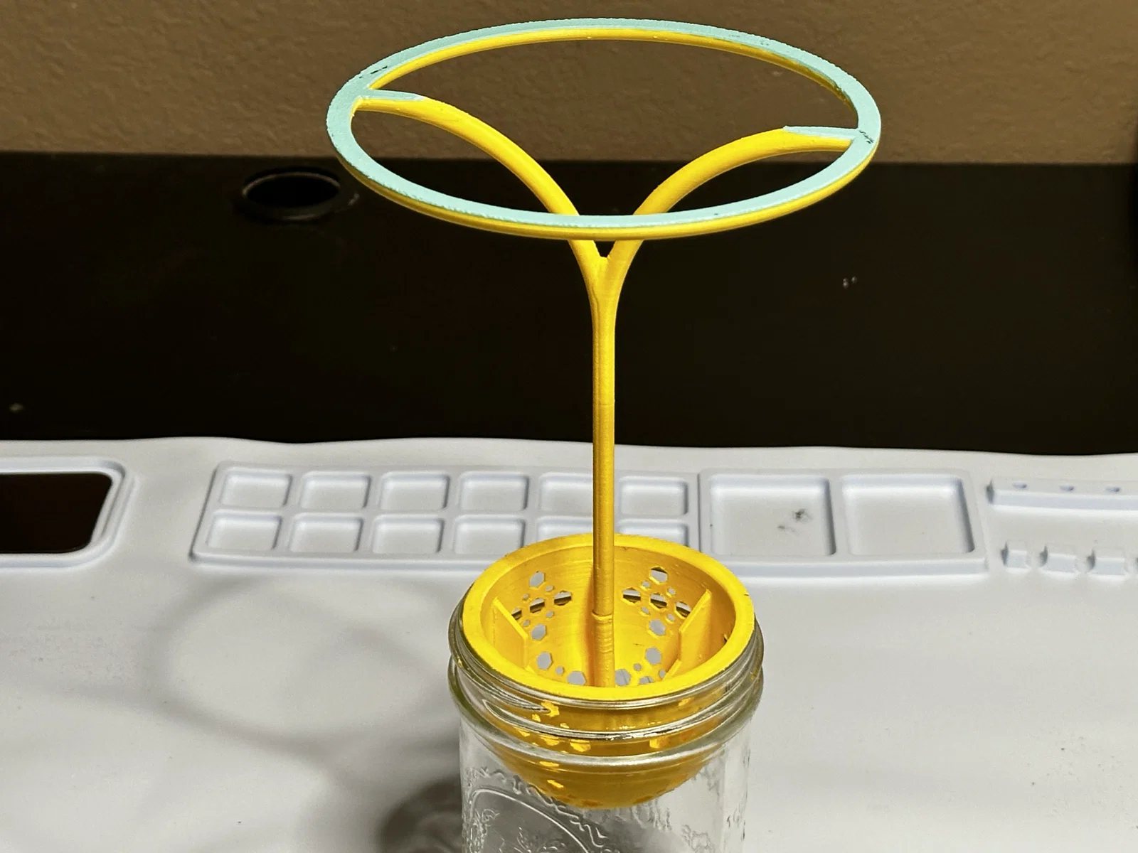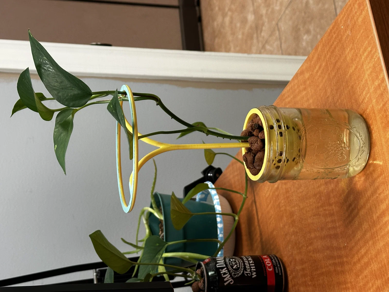Phương pháp Kratky này được thiết kế để phù hợp với một bình Mason rộng miệng và bao gồm một giá đỡ để giữ cho thực vật thẳng đứng hơn hoặc chỉ đơn giản là giữ chúng ra khỏi bàn. Nó là tuyệt vời cho dây leo hoặc cây có gân dài.