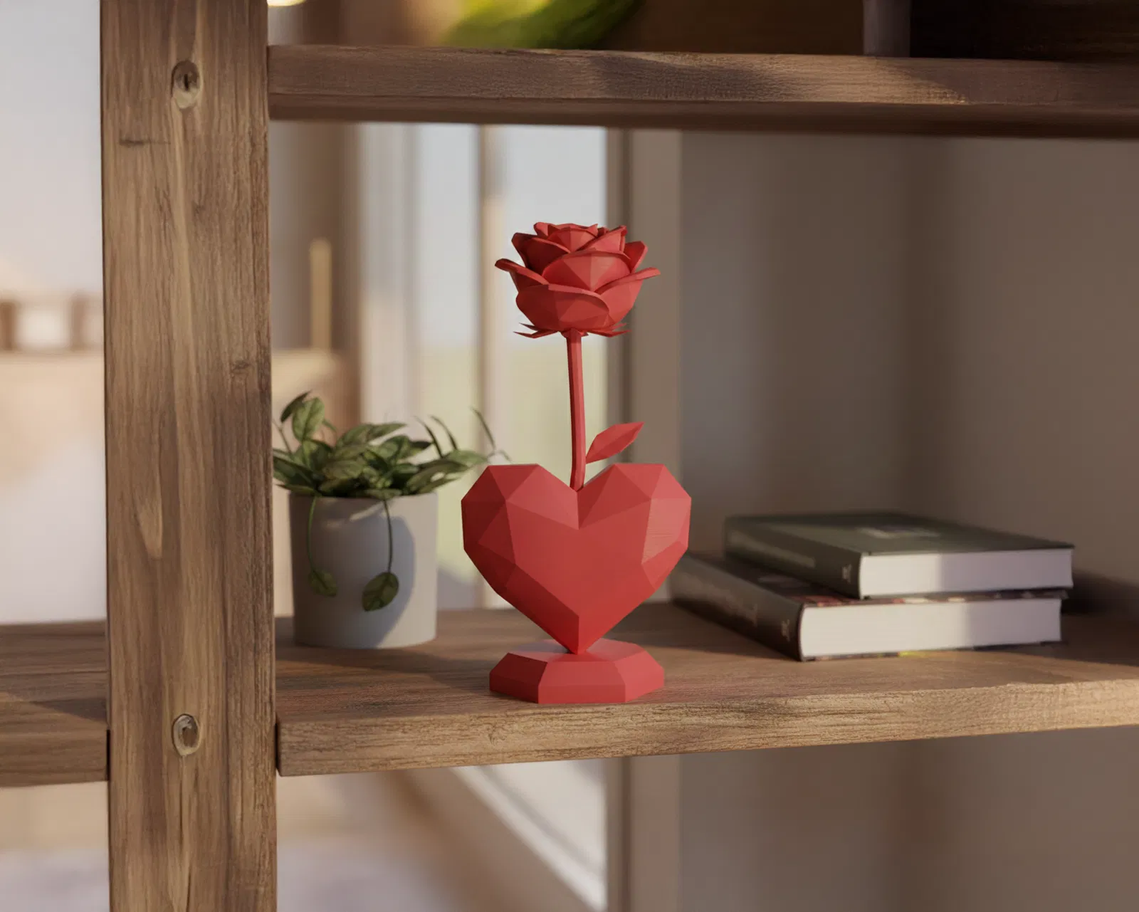 Hoa Hồng Lowpoly Kèm Đế Trái Tim - Decor Ngày Valentine