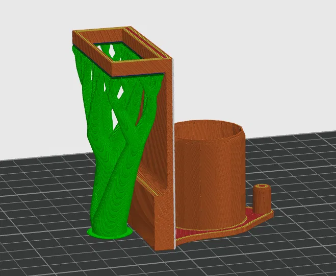 Mình in bằng PETG để có độ dẻo nhẹ, dùng nozzle 0.6mm. Bật supports on build plate.