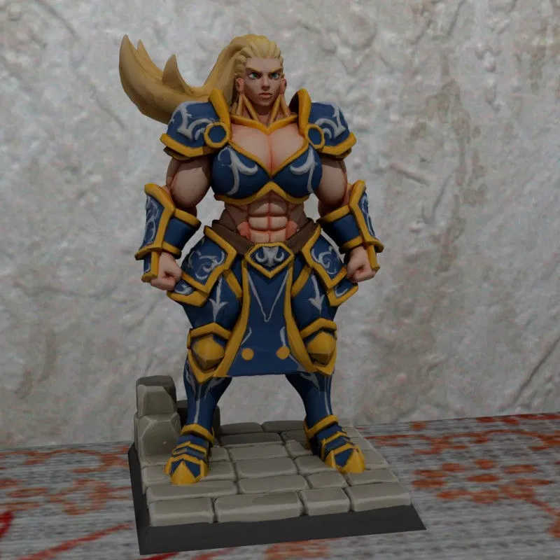 Miniature 28mm nữ Paladin cho TTRPG/DND, tối ưu in FDM không cần support (cần Bridge mode). Dễ in và dễ sơn, ví dụ in trên Ender3 với layer height 0,15. Sơn mẫu bằng màu Vallejo.