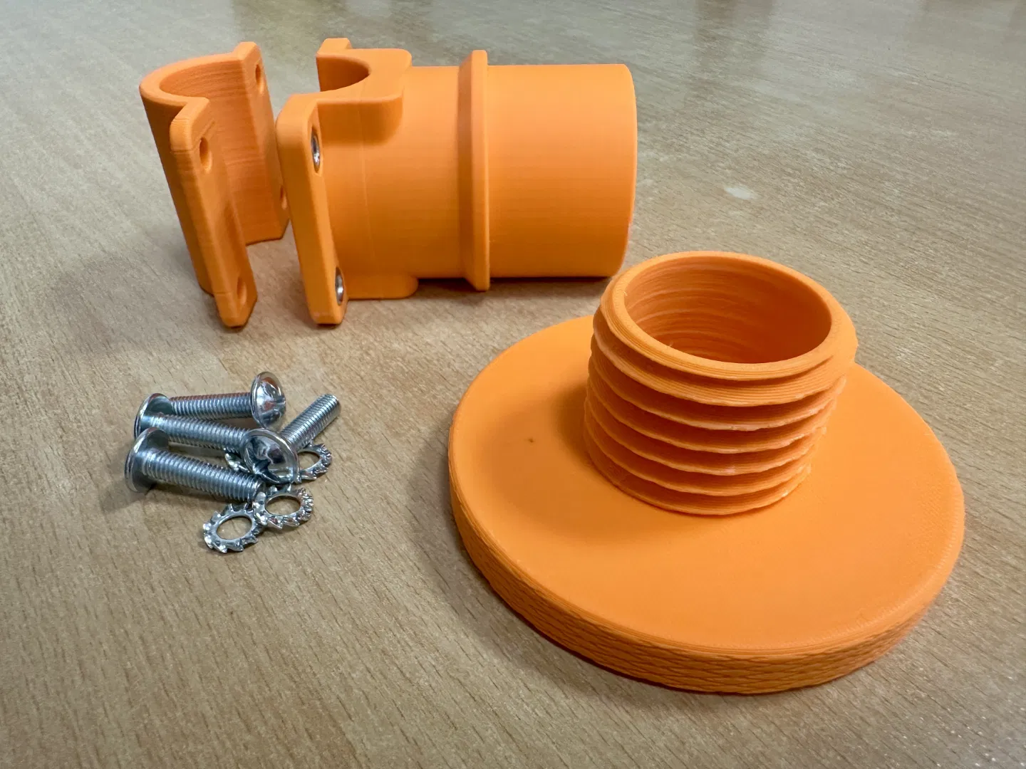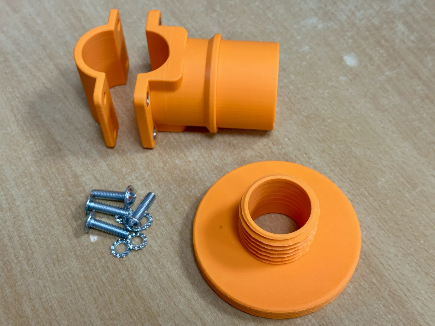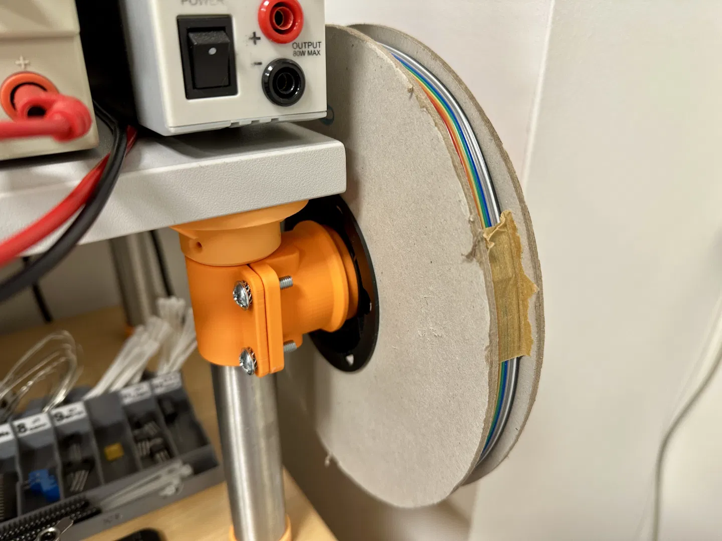 Mẫu Wire spool holder dùng để kẹp cuộn dây lên ống đường kính 27mm. Siết bằng 4 ốc M5, có chỗ âm gắn đai ốc. Dễ in, không cần support nếu in theo phương thẳng đứng, phù hợp in PLA+.