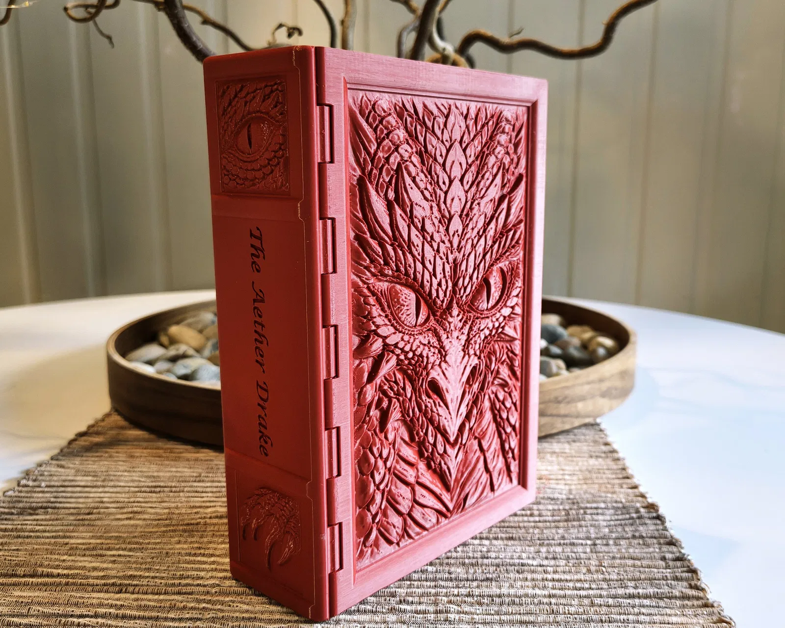 Secret Storage Book – Dragon Edition là bản phát hành thứ hai trong series Ornate Book của mình. Hộp chứa đồ trang trí này được thiết kế giống một cuốn sách dập nổi kiểu cổ điển, nổi bật với họa tiết rồng lấy cảm hứng từ nghệ thuật bìa sách fantasy truyền thống.