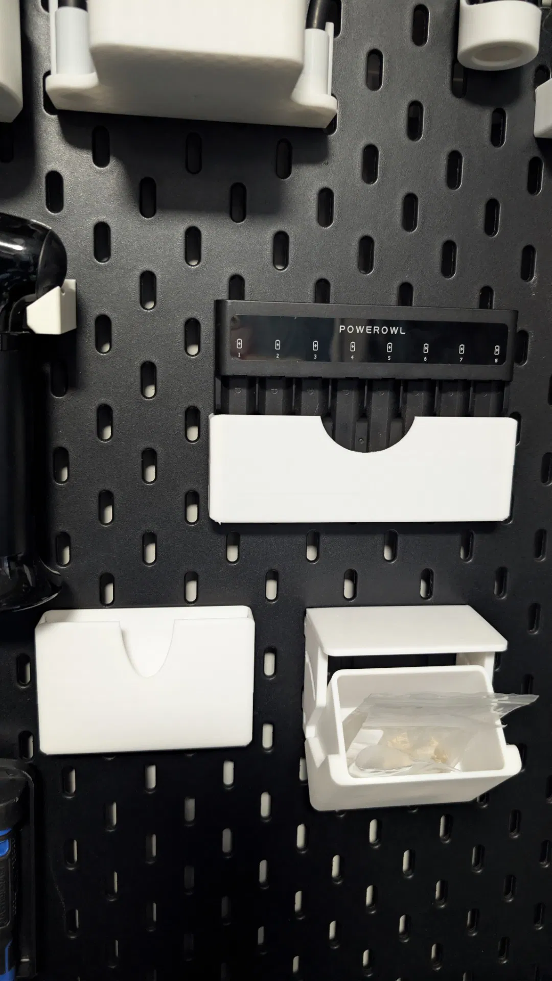 Đây là giải pháp gắn chắc chắn cho Powerowl Smart Battery Charger (Model FY-828) lên hệ pegboard IKEA Skadis.