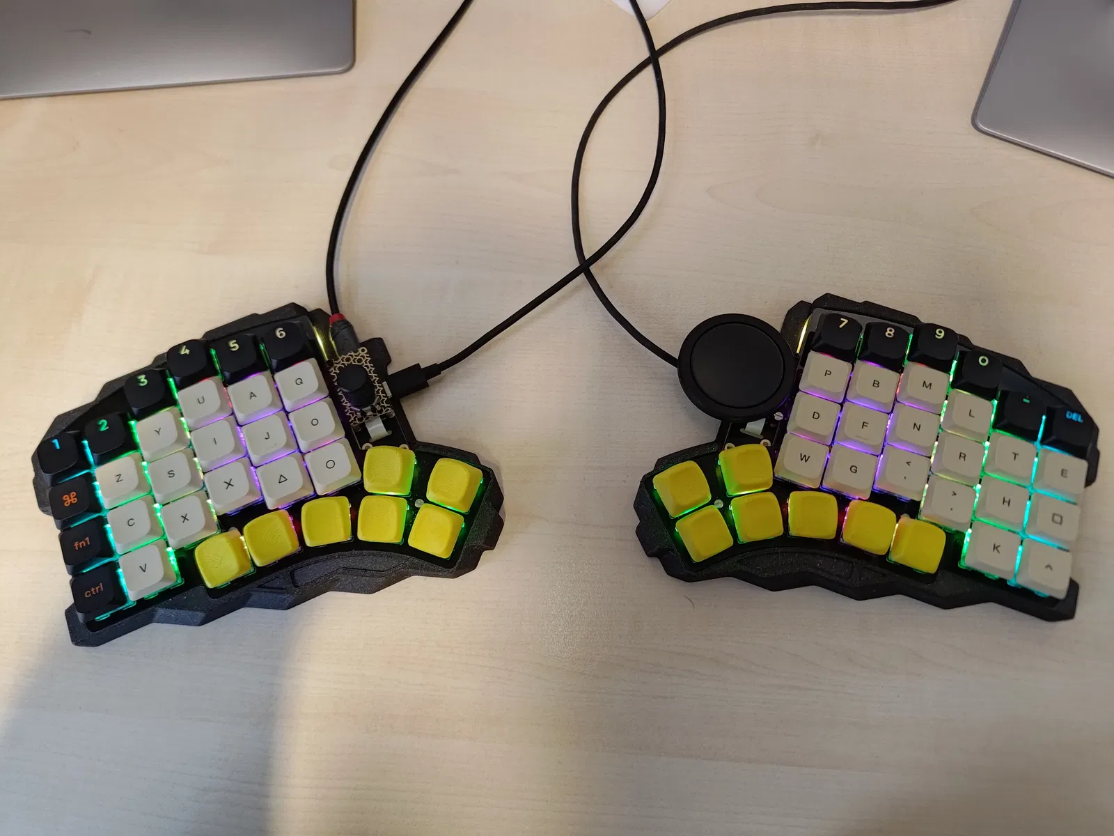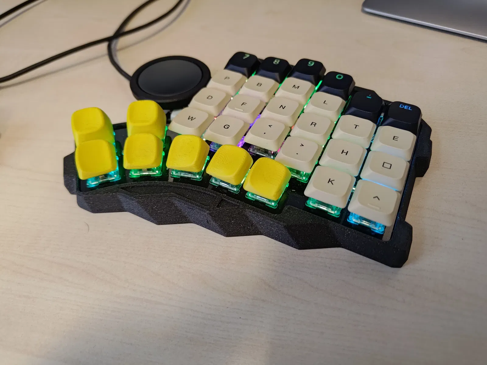 Mình dùng các file DXF chính thức từ GitHub của họ. Như bạn thấy trong hình, touchpad và encoder wheel đều được hỗ trợ (trên cả hai nửa, vì hai phần case chỉ là bản mirror của nhau).